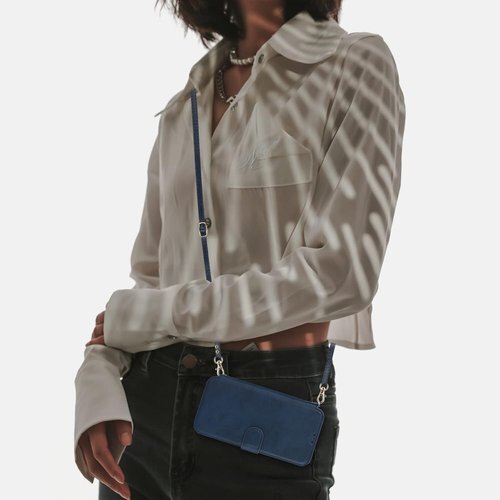 Havaya スマホショルダー いphone15Plu ード収納 カバー レンズ保護 6.7インチ対応 -ブルー 1163