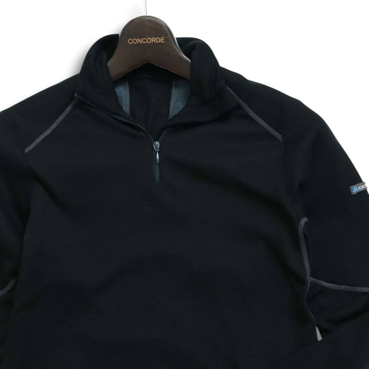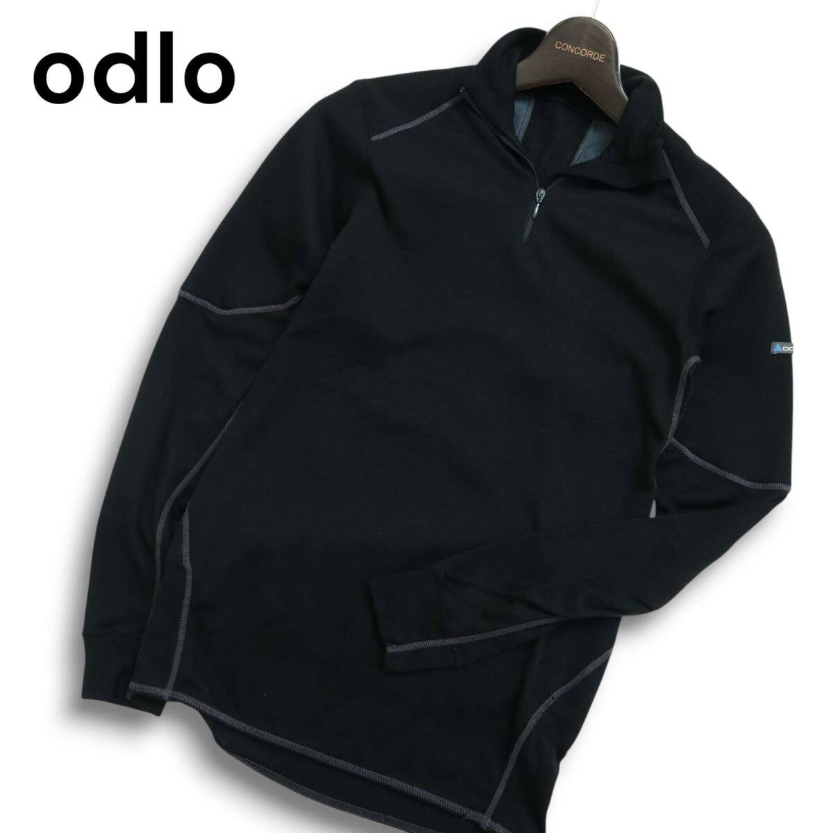 odlo オドロ 秋冬 ストレッチ 裏起毛★ 長袖 ハーフジップ ポロシャツ Sz.M レディース 黒 トレーニング