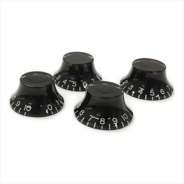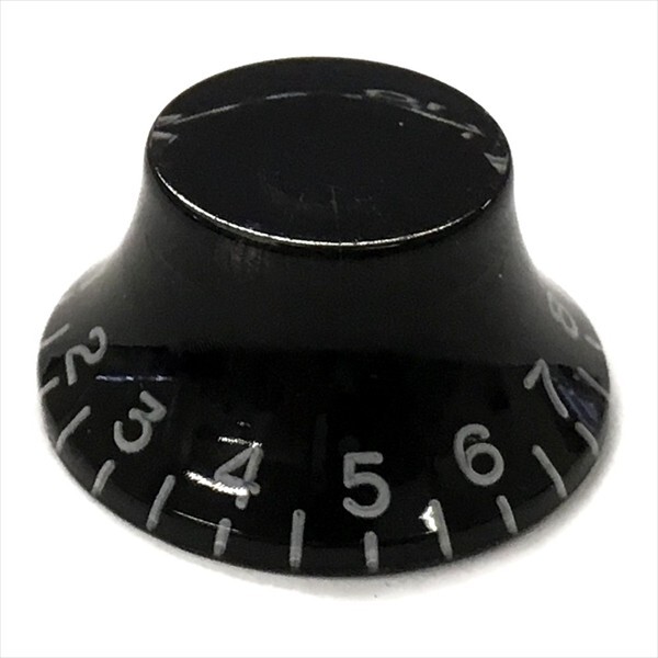 国内外の著名ブランド製ギブソンタイプギターに幅広く搭載されている定番のエンボス文字(彫り文字)仕様トップハットノブ(ベルノブ)。