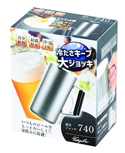 製品サイズ:(約)幅13×奥行8.5×高さ16.5cm 製品重量:(約)0.26kg 品名:真空ジョッキ 素材・材質:本体/ステンレス鋼(アクリル樹脂)、ハンドル/ABS樹脂(耐熱温度80度) 満水容量:740ml 生産国:中国 ※冷・温OK いつものビールをもっとおいしく!!家飲みに最適!真空ジョッキ 633ml瓶ビールにちょうど良い容量! ステンレス真空断熱構造により、外気へ熱が伝わりにくく、飲み物の温かさ・冷たさを長時間キープします。 薄くて口あたりの良い飲み口で、美味しくビールを楽しめます。 大人の手でも指4本入って持ちやすい作りのハンドルです。 結露を防止するのでデスクの上を濡らすリスクも低いです。 ビンテージ風の加工で、家呑みをおしゃれに楽しめます。 ビール以外の温かい飲み物にもおすすめです! ご注意:熱い飲み物を入れた時は、飲み口が熱くなっているので注意してください。 冷凍庫に入れたり、電子レンジで加熱したりしないでください。 ドライアイスは入れないでください。 スープやスポーツドリンク等の塩分を含んだ物を入れた時は、早めにお手入れをしてください。 つけ置き洗いや食器洗い乾燥機には使用しないでください。