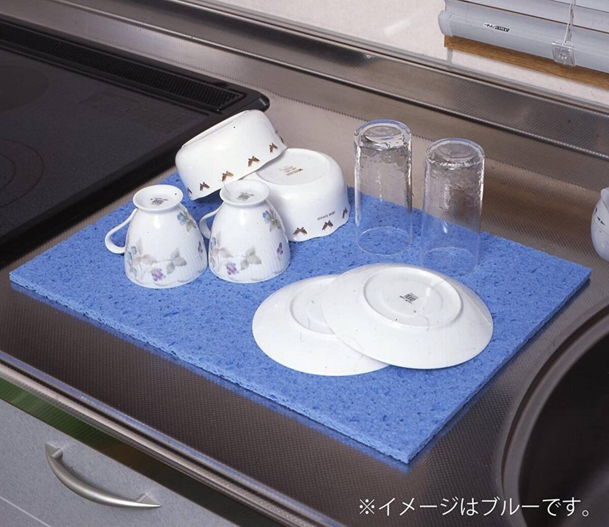 ・天然素材のセルローススポンジは吸水性に優れ、食器やグラス・台所の水切りが素早く簡単です。乾燥が速く、雑菌の繁殖から守り衛生的です。