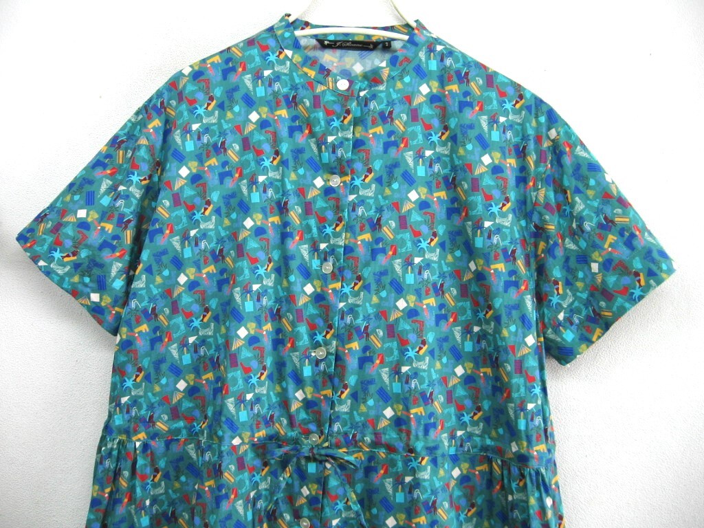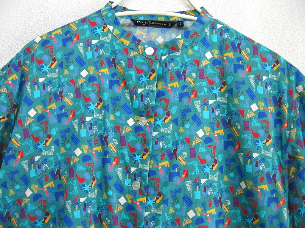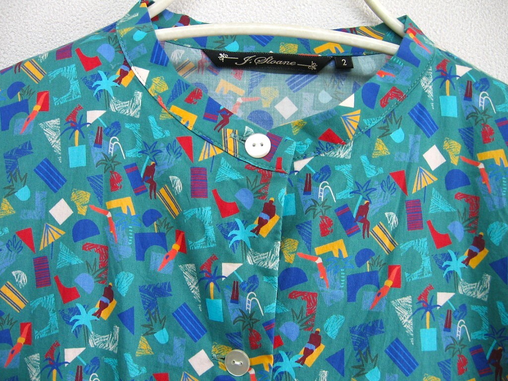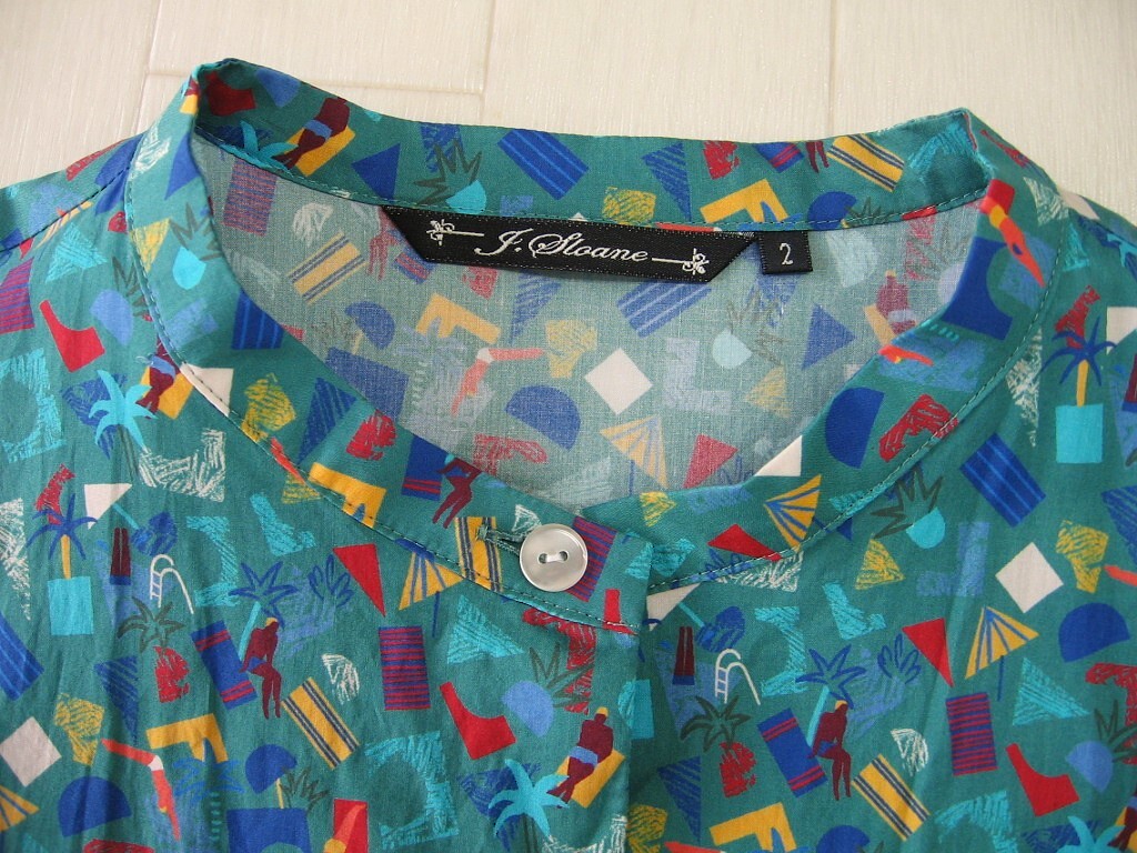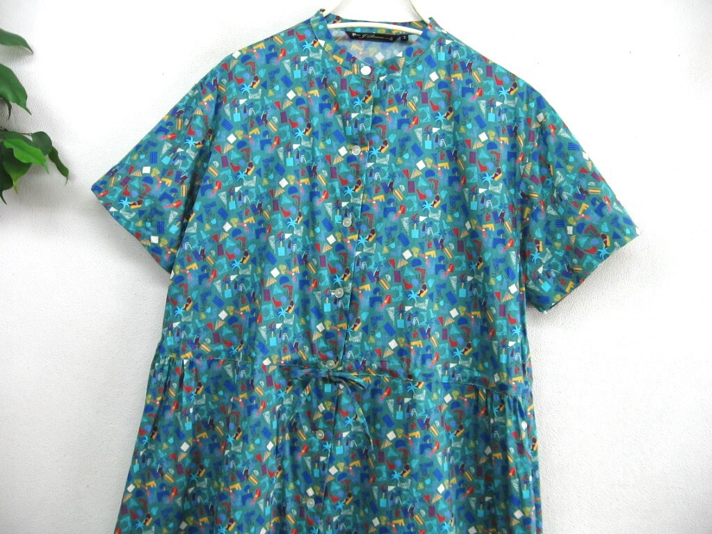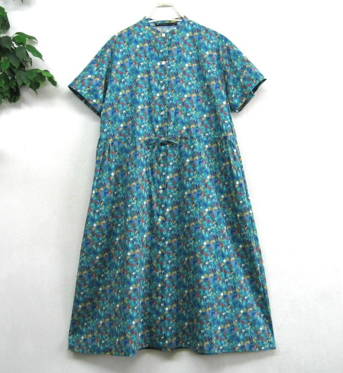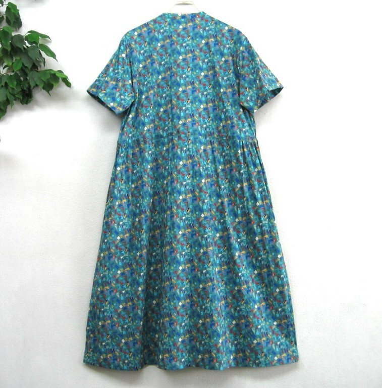 J.Sloane ジェイスローアン 日本製 ★ リバティ♪ ロングコットンワンピース M ブルーグリーン系 Miro Pools 2022 LIBERTY ほぼ未使用