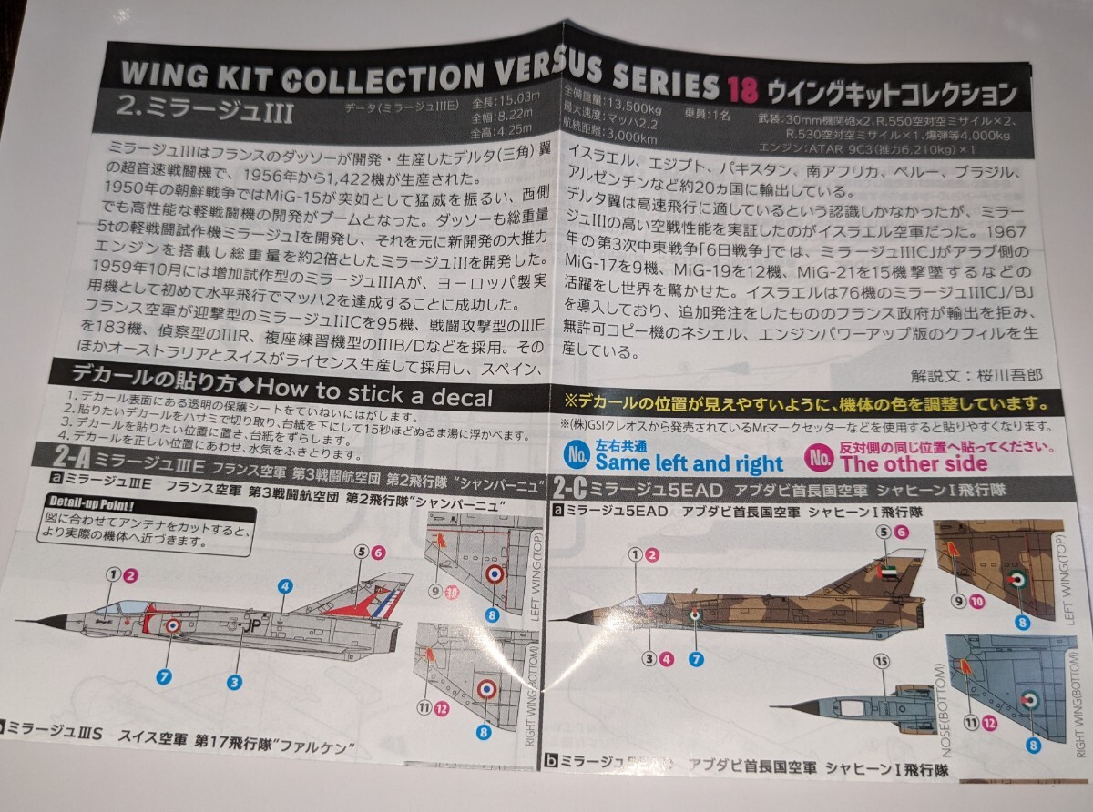ウイングキットVSシリーズ第18弾は、第3世代ジェット戦闘機からF-5EとミラージュIIIをチョイス。