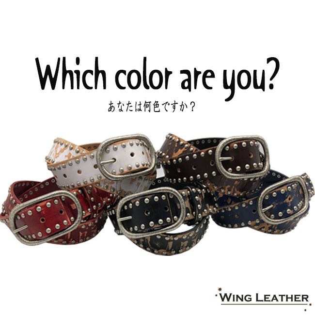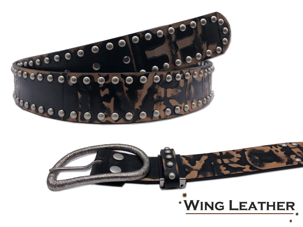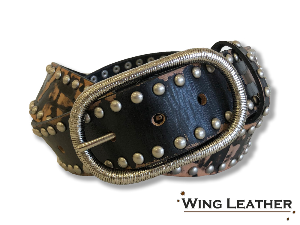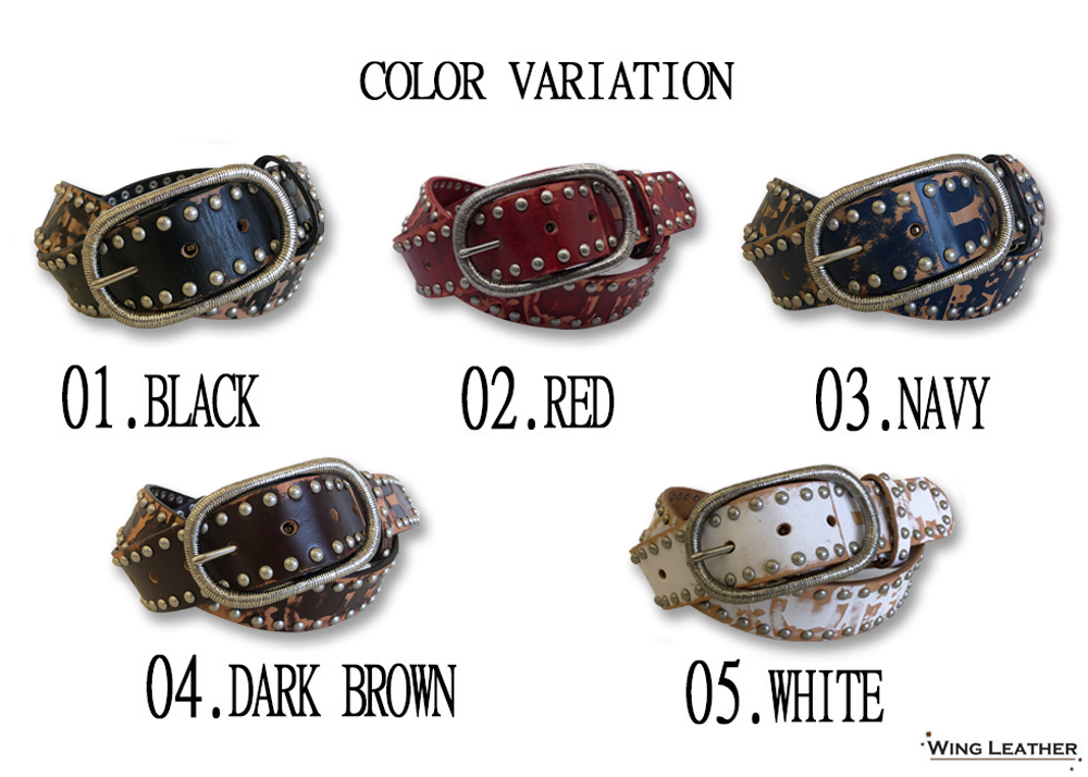 新品 イタリアンレザー カジュアルベルト 本革 牛革 一枚革 スタッズ メンズ レディース 40mm ダメージ加工 黒色 ブラック GTC022-BK