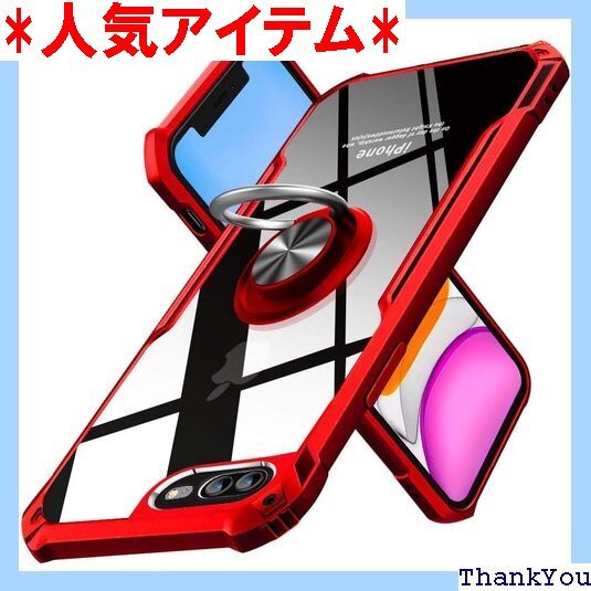 iPhone 8 Plusケース iPhone 7 Plus ケース リング クリア TPU 透明 アイフォン7 Plus スマホケース リング付き 耐衝撃 シリコン ストラップホール付き 落下衝撃吸収 車載ホルダー 米軍MIL規格取得 スタンド機能 携帯カバー 落下防止 レンズ保護ト 耐久 軽量 防塵 人気 iPhone 7/8 Plus ケース レッド TJ-HON-7/8P 245
