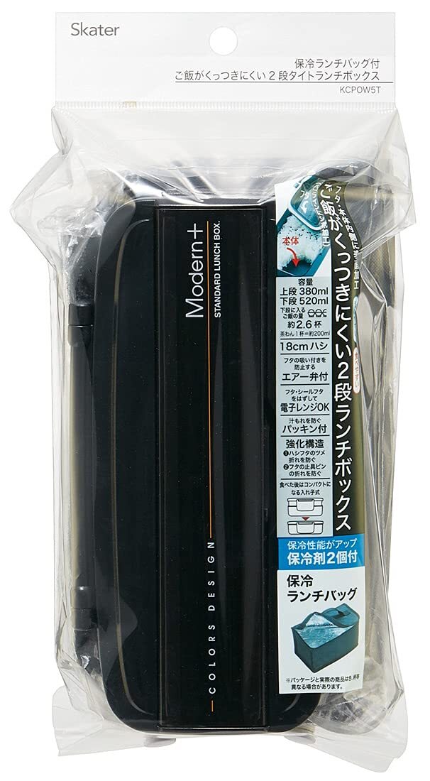 スケーター(Skater) 2段 弁当箱 男性用 900ml 保冷バック 保冷剤付き 日本製 モダンプラス KCPOW5T