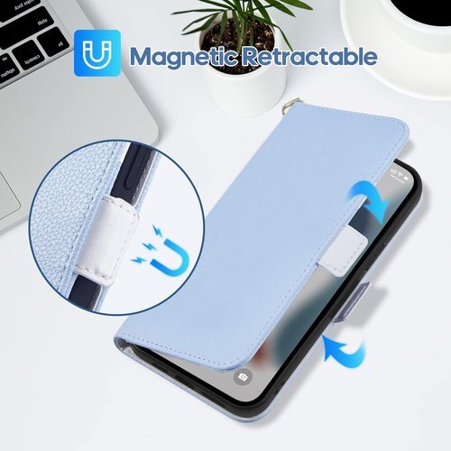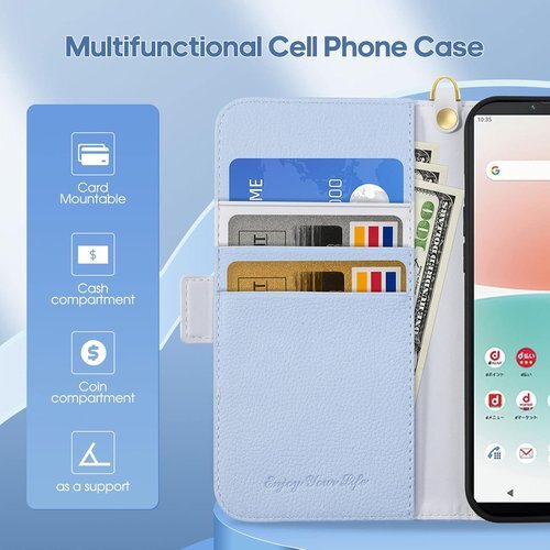 ALSDKEZI Sony Xperia 10 VI ケース 手帳型 ソニー エクスペリア10 第6世代 用 カバー 人気おしゃれ財布型カード収納 SO-52E doo/SOG14 au 携帯ケース ライチ柄高質PUレザー 良い触り心地 ケース サイドマグネット式 スマホケース スタンド機能 耐衝撃 保護カバー 大人 男女兼用 ライトブルー/Light blue 1306