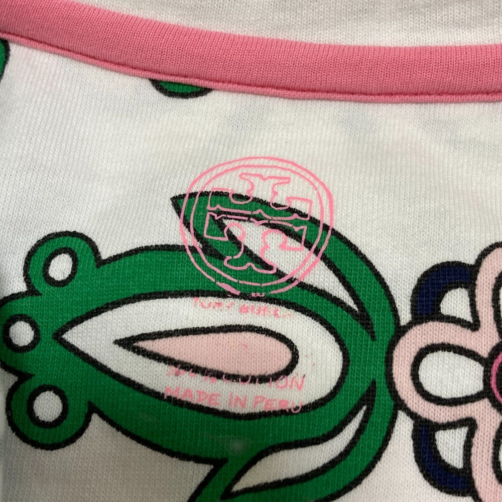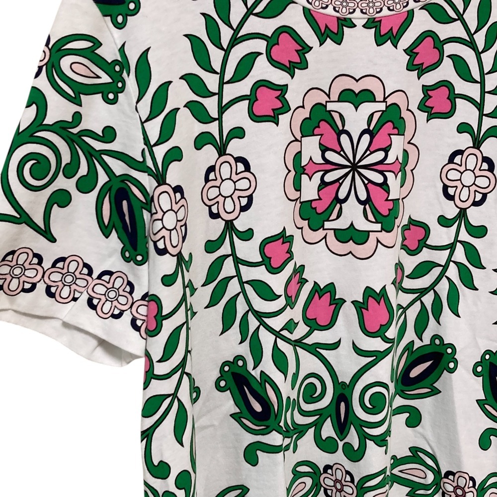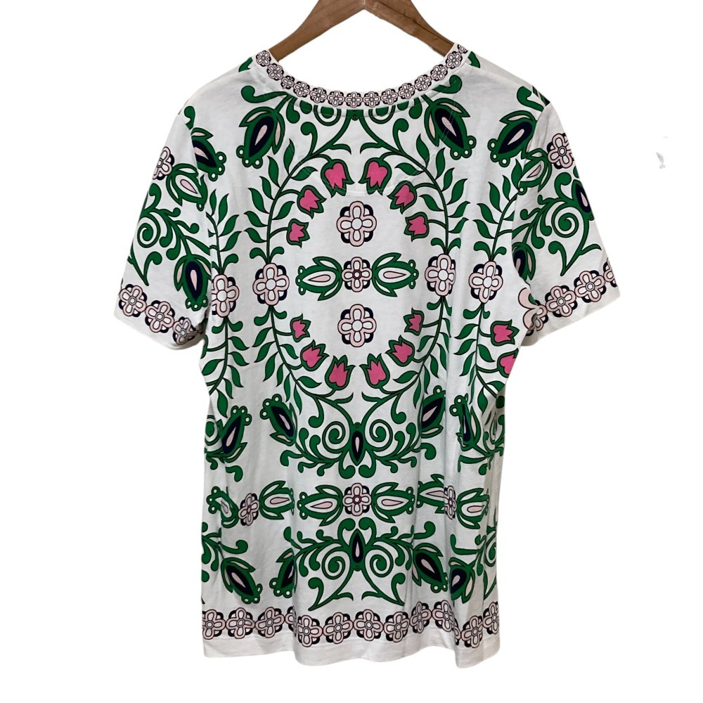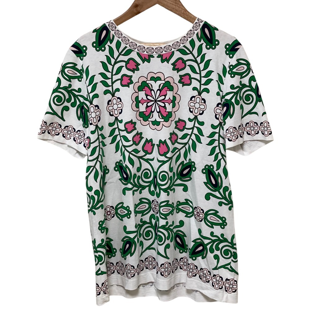 美品 Tory Burch トリーバーチ ボタニカルプリント ショートスリーブ Tシャツ カットソー ホワイト×グリーン