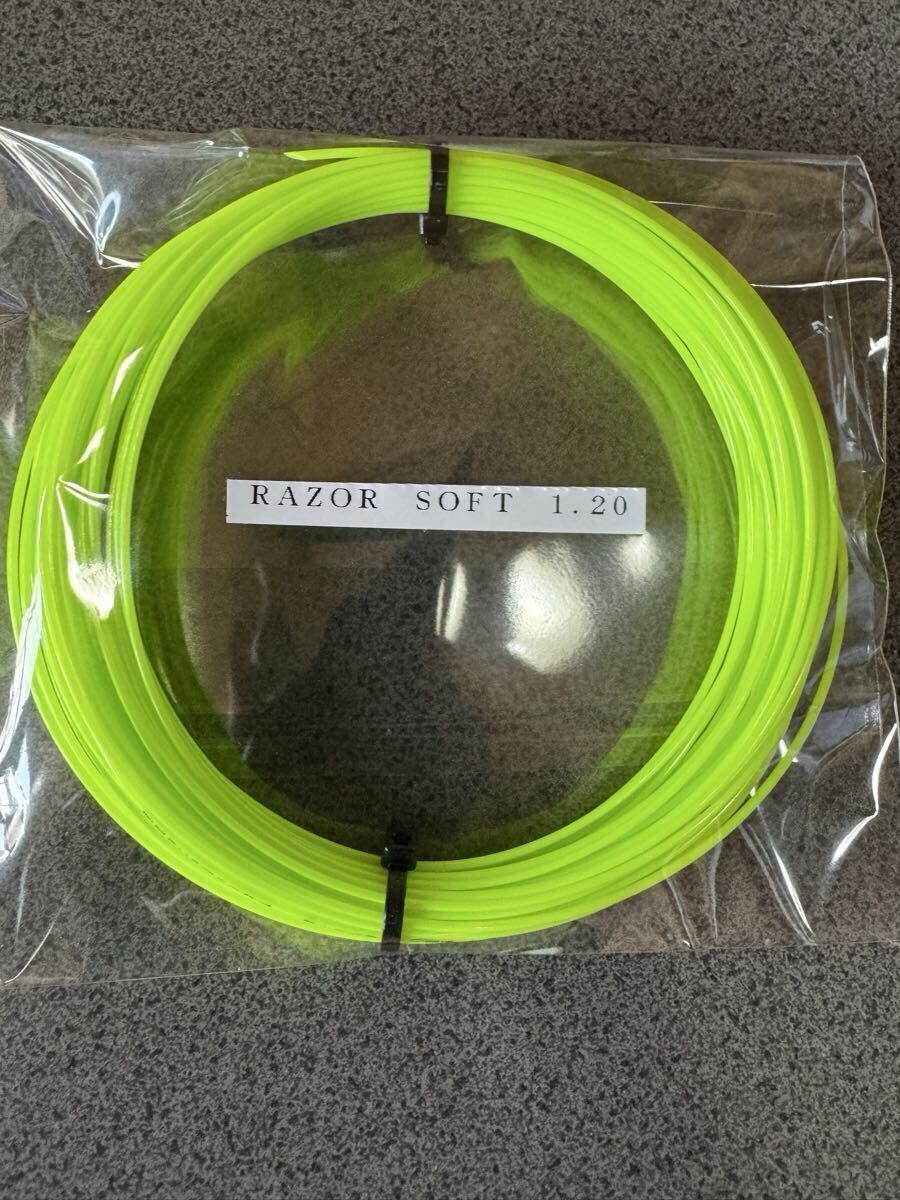 テクニファイバーの硬式テニスガット、レーザーソフトの1.20㎜ゲージロールカット品12m二張りになります。
