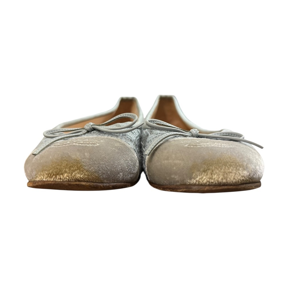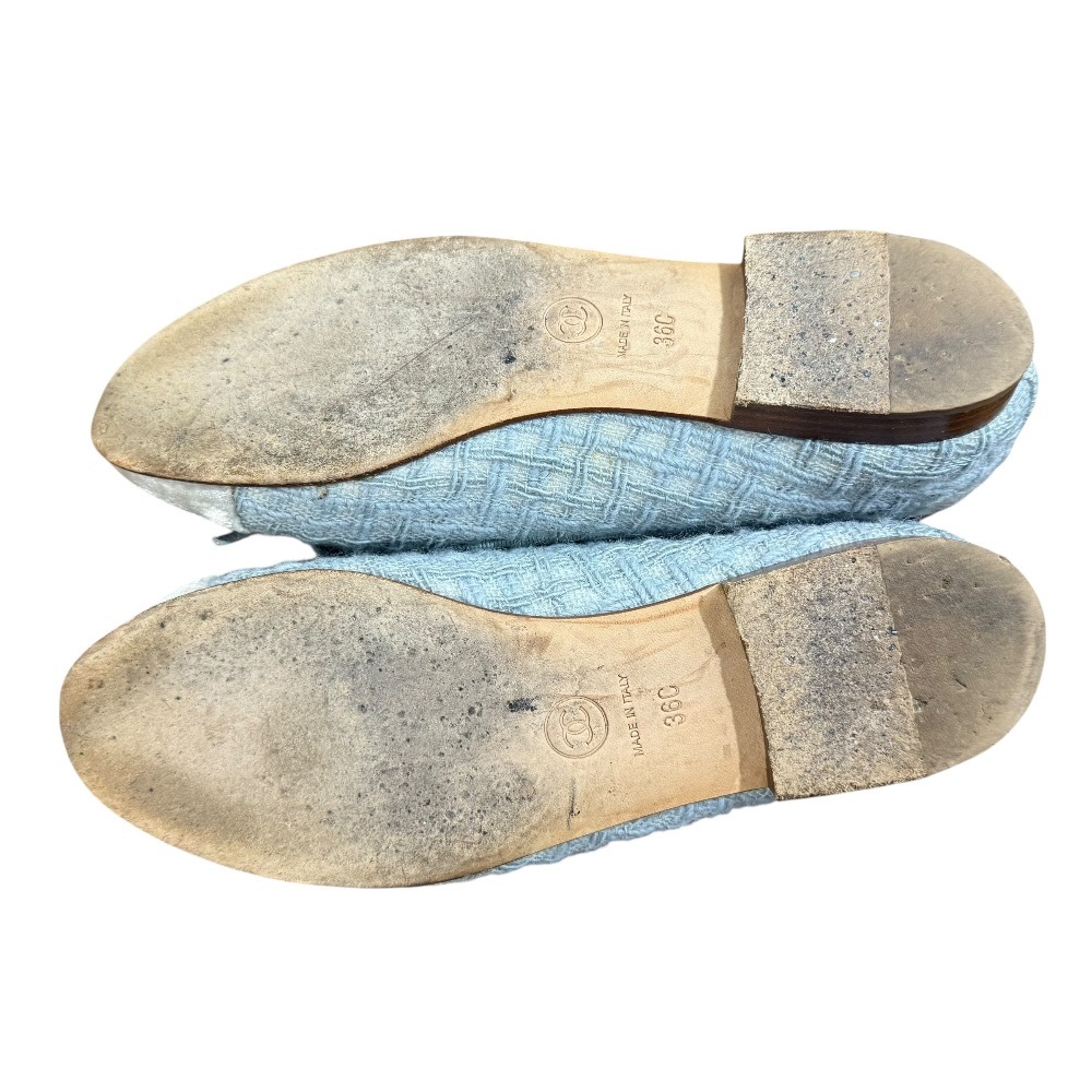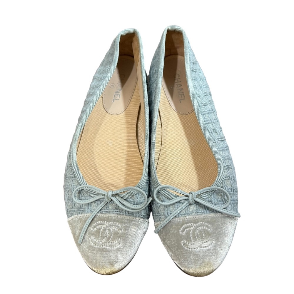 良品 CHANEL シャネル 定番モデル ココマーク ツイード バレリーナ フラットパンプス サイズ36C 約23cm ブルー×グレー