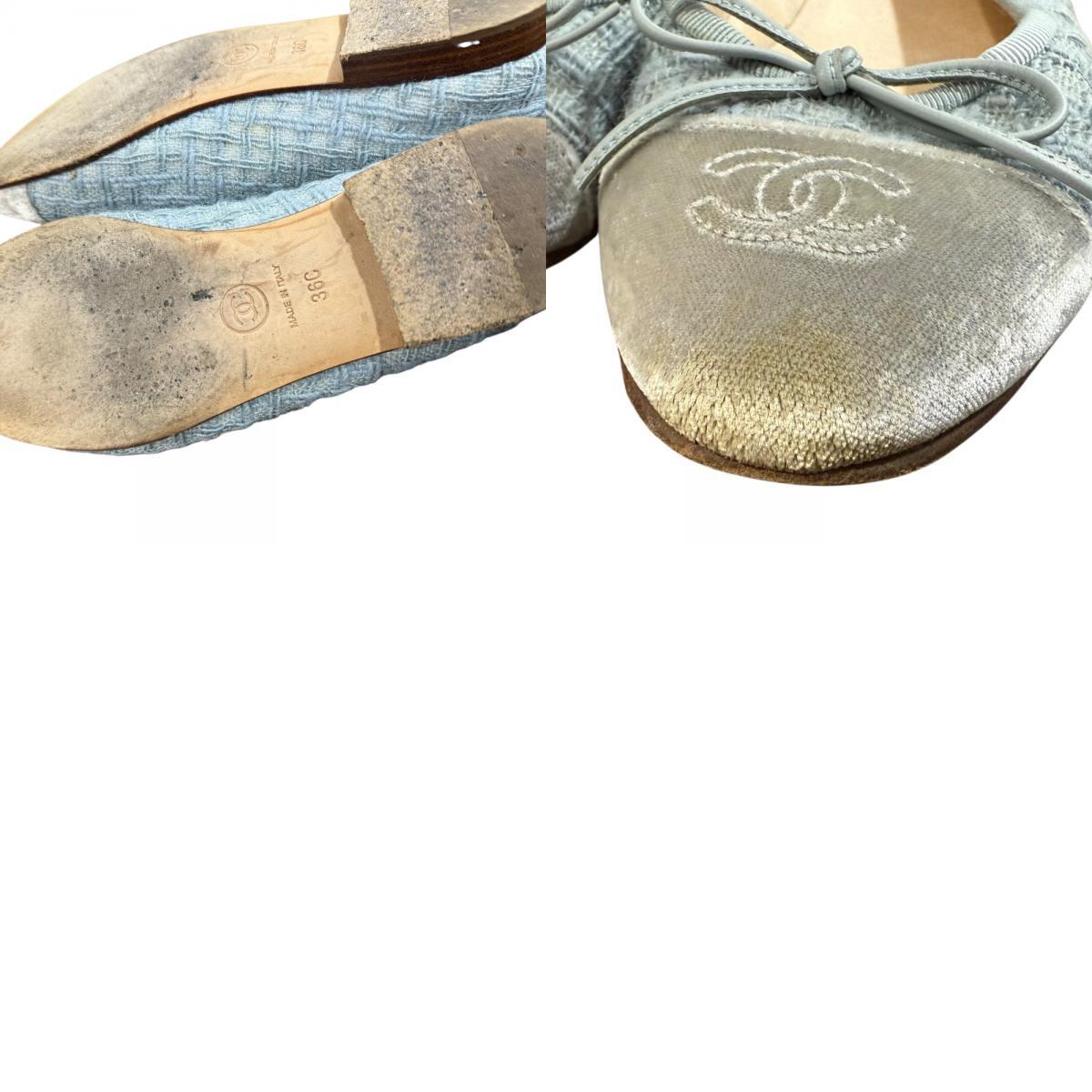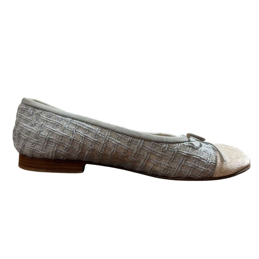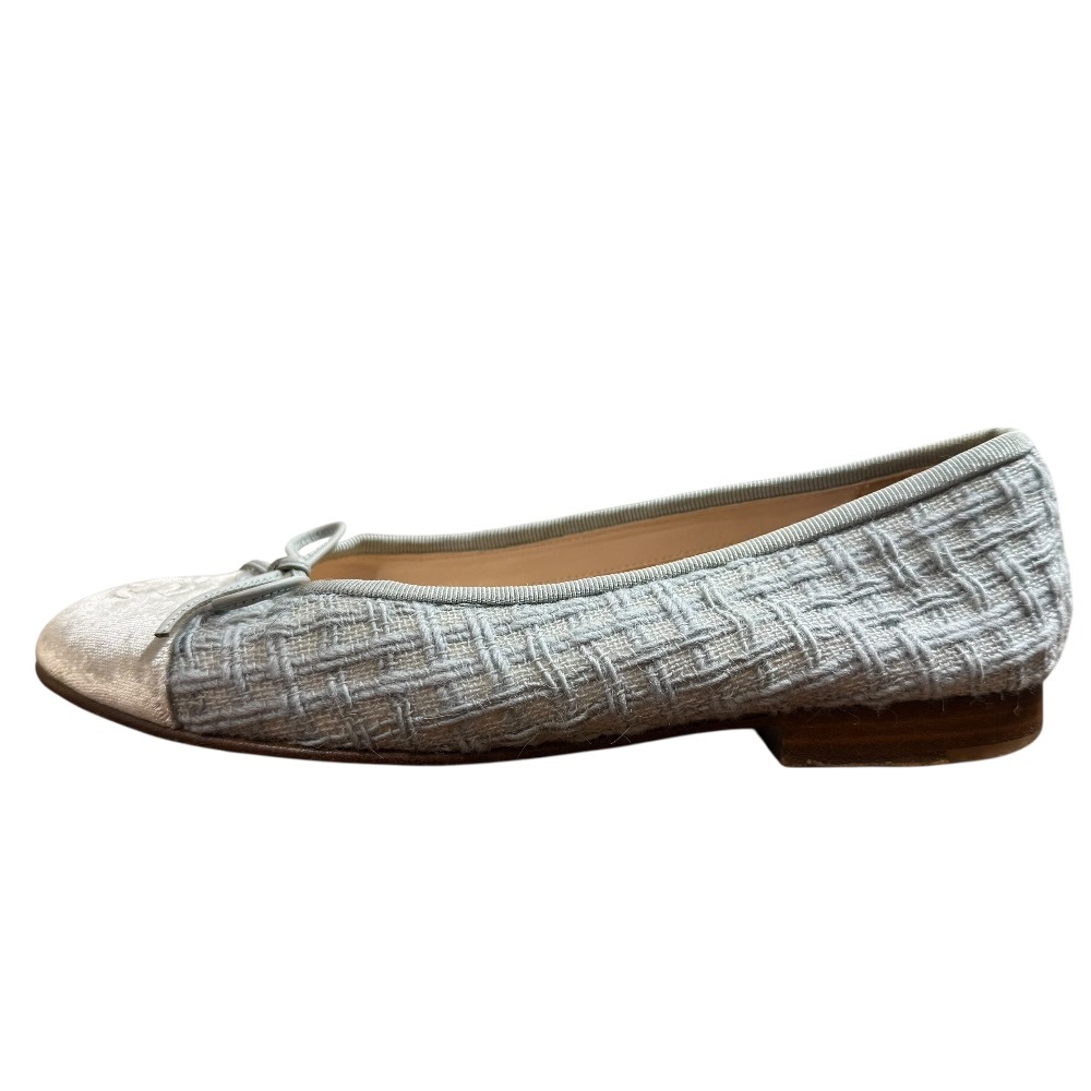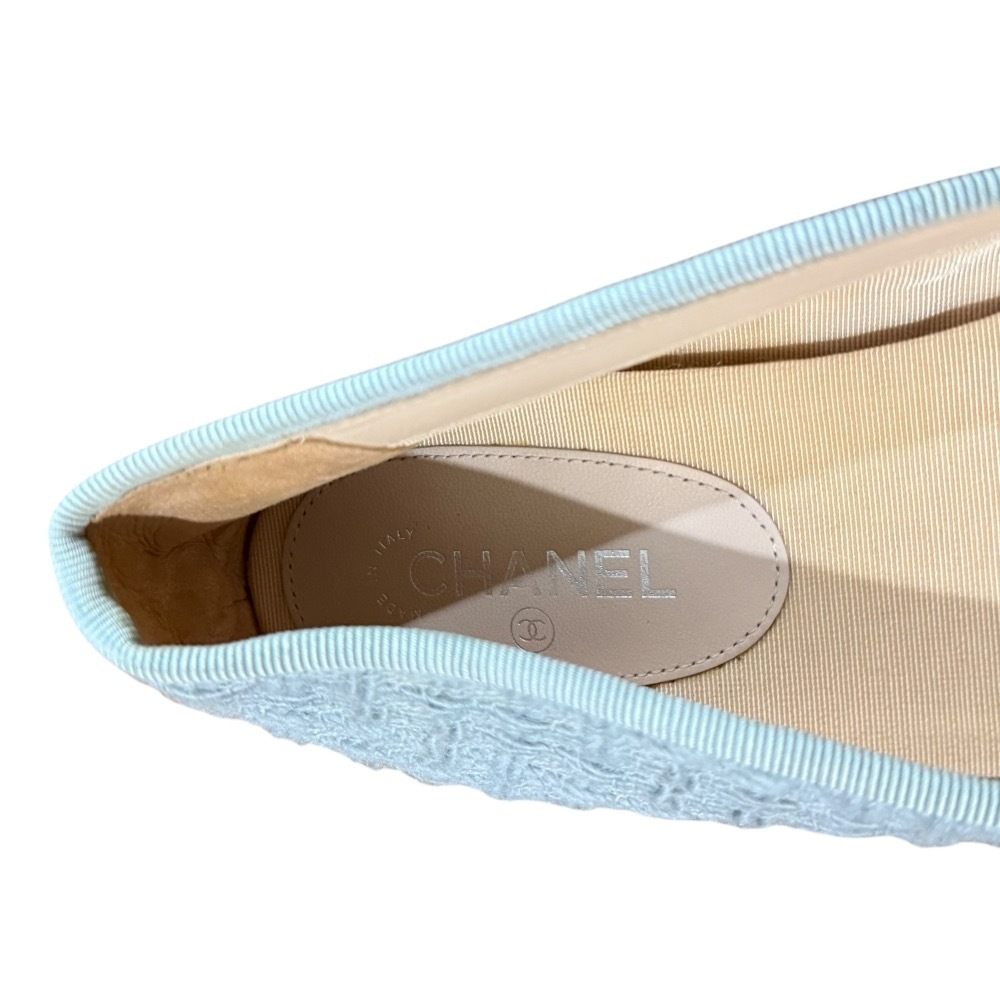 商品名:CHANEL シャネル 定番モデル ココマーク ツイード バレリーナ フラットパンプス サイズ36C 約23cm ブルー×グレー