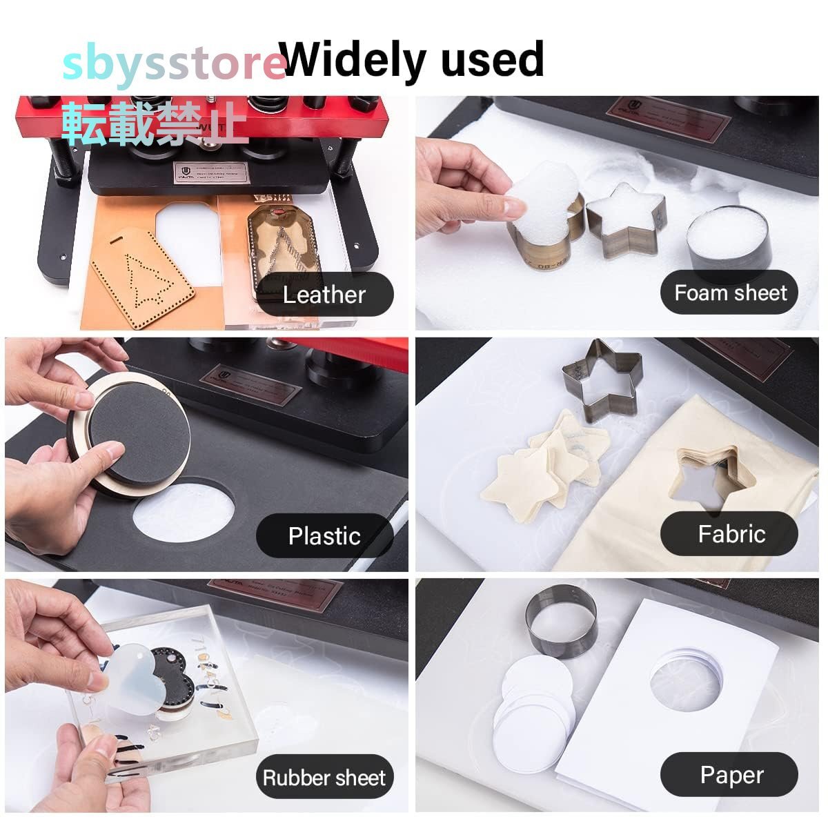 幅広い用途: レザーハンドプレスマニュボスマシンは、革、布、布、ステッカー、プラスチック、ゴムシート、フィルム、紙など、さまざまな材料の切断に適しています。操作中は、ダイカットのナイフエッジが上を向くように注意してください。