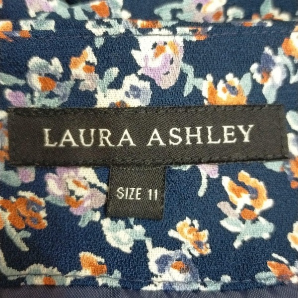 ローラアシュレイ LAURAASHLEY サイズ11 M - ダークネイビー×ピンク×マルチ レディース クルーネック/ノースリーブ/ひざ丈/花柄 美品