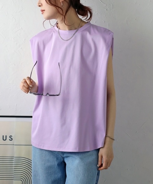 「&HALF」 ノースリーブトップス M ラベンダー レディース