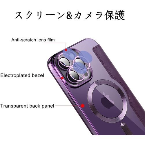 【マグネット式】-----内蔵マグネットの手帳型ケースです。カバーに使われているマグネット式の設計により、スマートフォンをしっかり固定できます。閉じたときにもの音は聞こえるので、持ち運びも簡単で使い勝手がよいです。