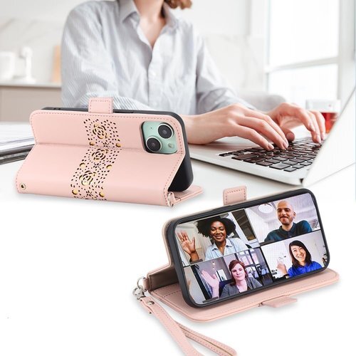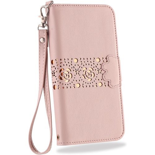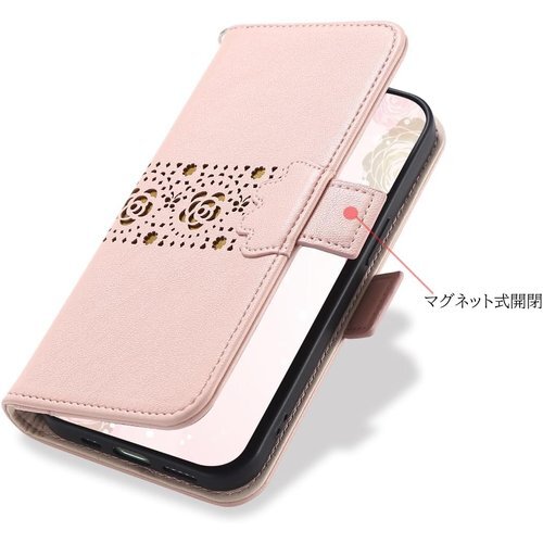 iPhone 15Pro 手帳型ケース 6.1インチ おしゃれ iPhone 15Pro スマホケース 可愛い 透かし彫りの花と胡蝶柄 アイホン 15Pro 手帳型携帯カバー 全面保護 カード収納付き スタンド機能 ストラップ付き マグネット付き アイフォン 15Pro ケース 手帳型 多機能 便利 ピンクと花 1101