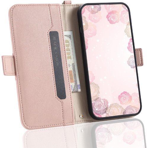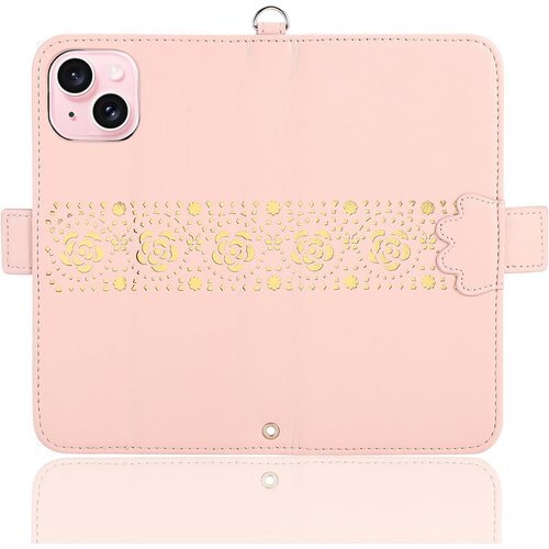iPhone 15Pro 手帳型ケース 6.1インチ ン 15Pro ケース 手帳型 多機能 便利 ピンクと花 1101