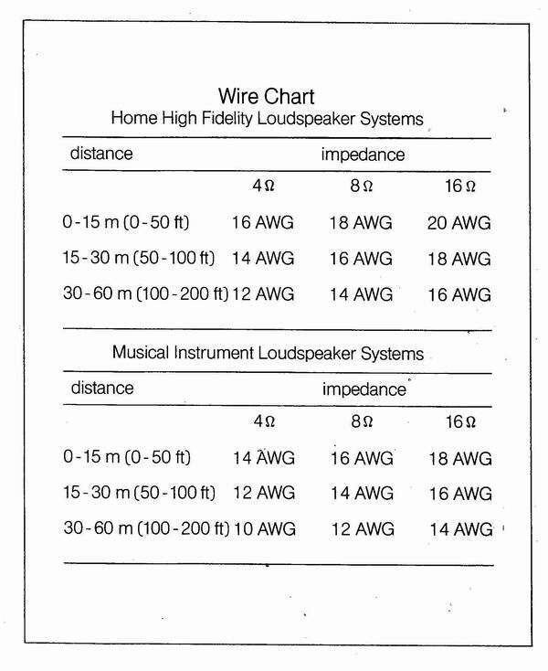 『Wire Chart』は昔のJBLの自作スピーカーシステムに使用すべきケーブルの一覧表で、距離によって適切な太さのケーブルを選び、最も良い音が出るように長さを調節する事が求められました。