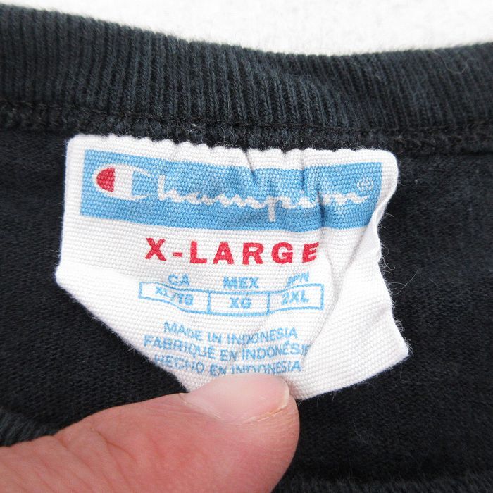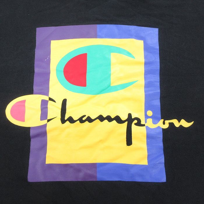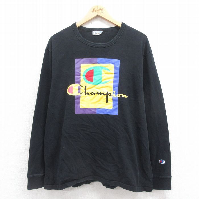 【商品名】 XL★古着 チャンピオン champion 長袖 Tシャツ メンズ ビッグロゴ クルーネック 黒