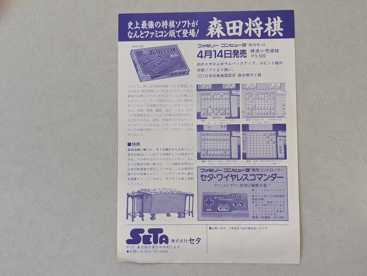 ファミコン チラシ 森田将棋 / フライヤー セタ SETA ファミリーコンピュータ