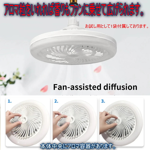 LEDシーリングファン付ライト リモコン付 口金E26照明器具 LEDライト アロマ機能付 扇風機 サーキュレーター 色温度&風量調整付 角度自在