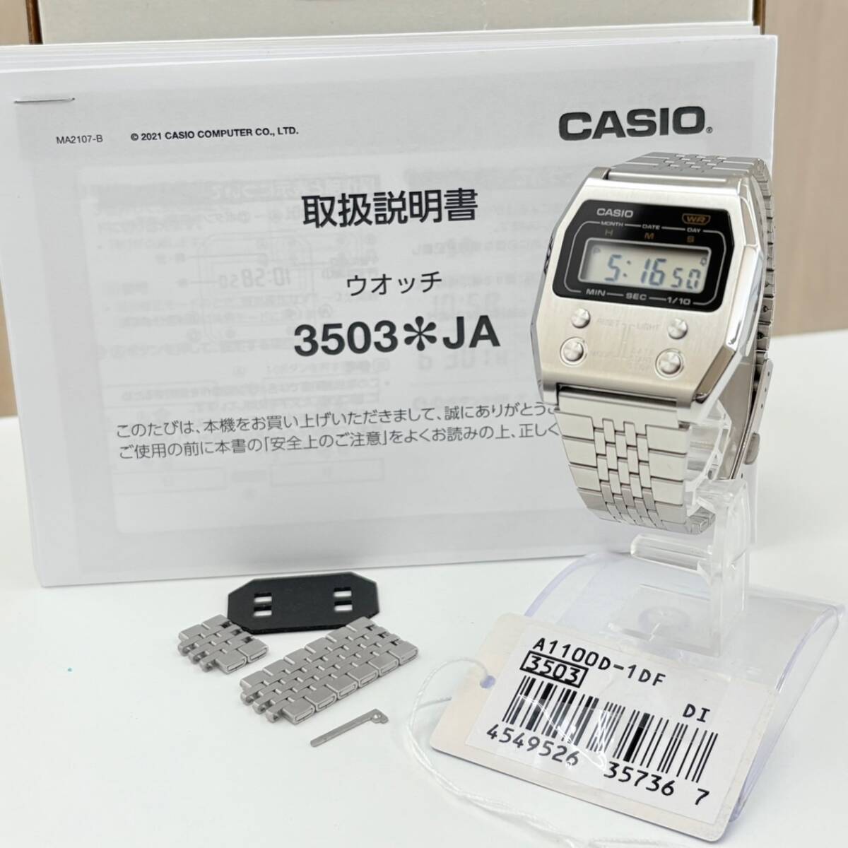 極美品 保管品 CASIO CLASSIC カシオ クラシック A1100D-1JF 3503 ステンレス デジタル QZ クオーツ 電池式 腕時計 外箱 説明書付き K2358