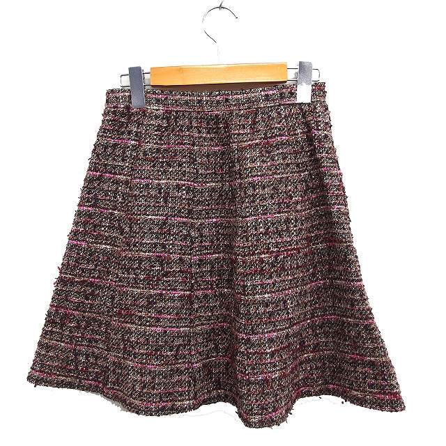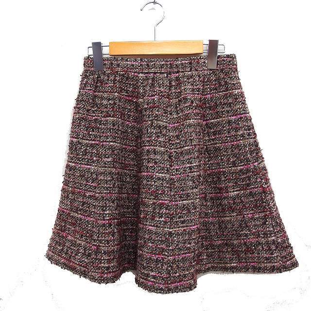 アベニールエトワール Aveniretoile ツイード フレアスカート ミニ ウール混 36 ブラウン 茶 /FT43 レディース