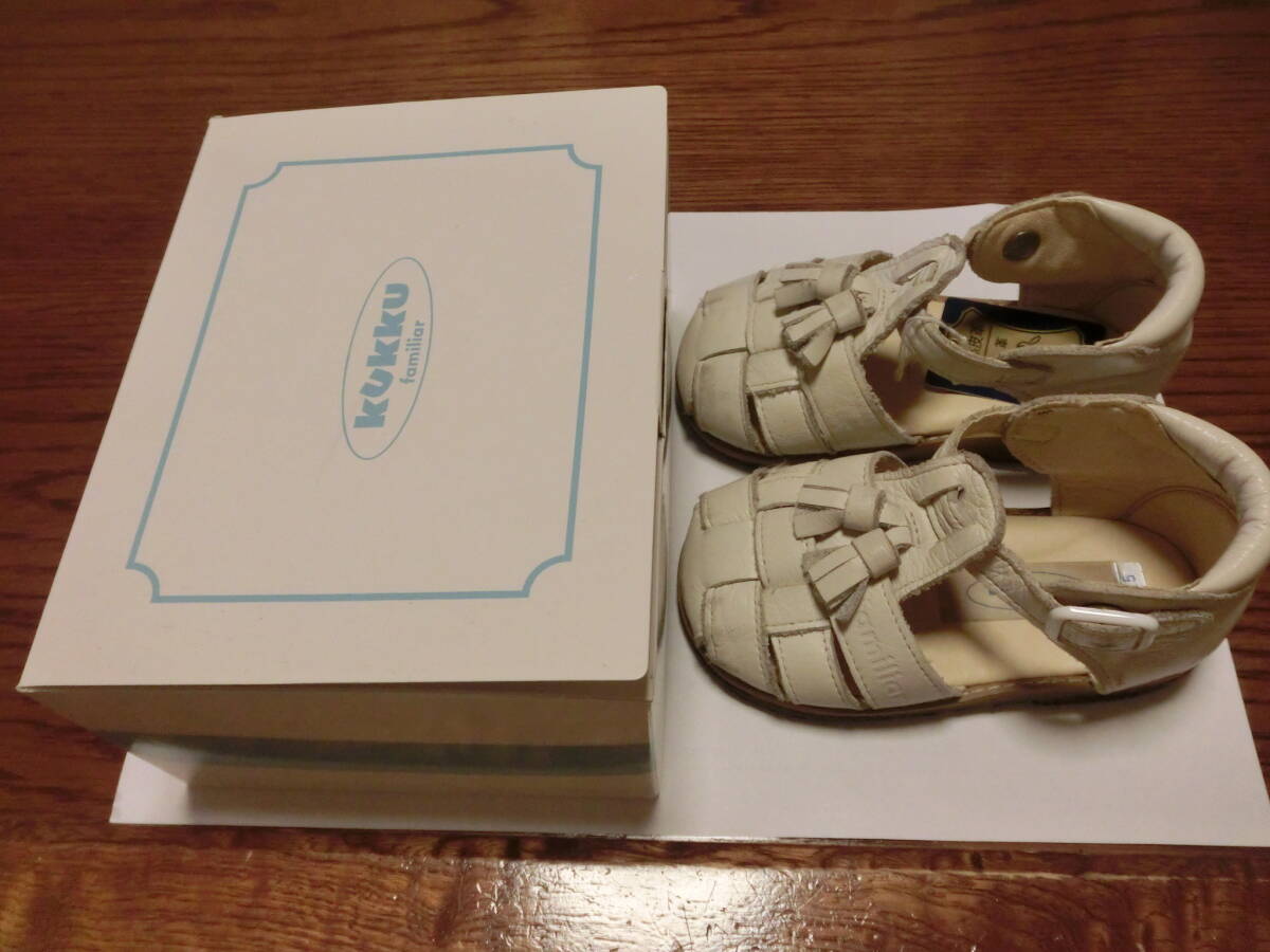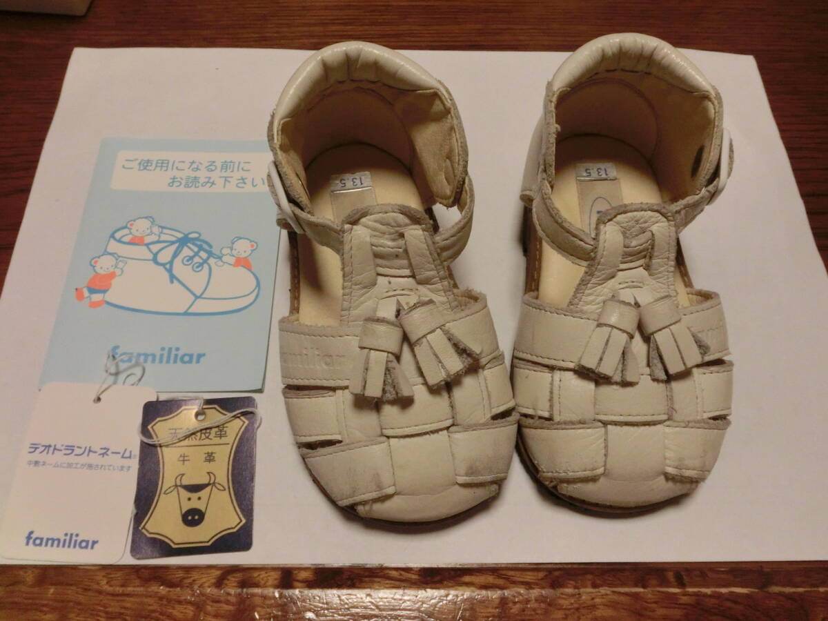美品*ファミリア*FAMILIAR*KUKKU*牛革*サイズ13.5*品番040147*オフホワイト*元箱、取説付き*0427-02‘