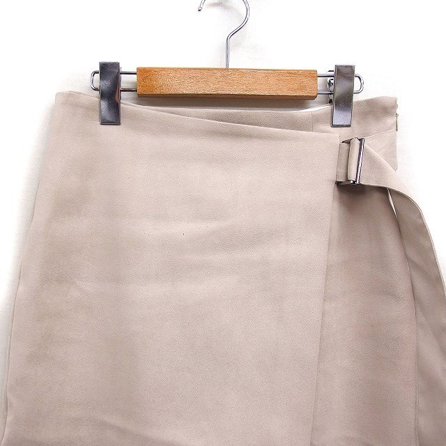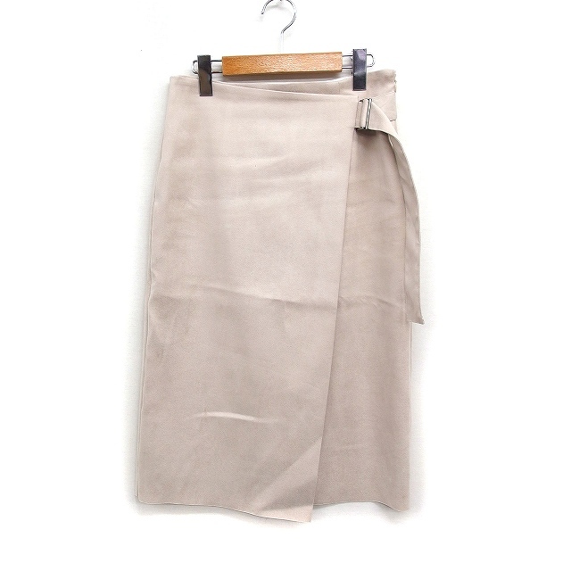トゥモローランド TOMORROWLAND スエードライク ラップスカート ミディ丈 サイドベルト 無地 34 ベージュ /FT45 レディース