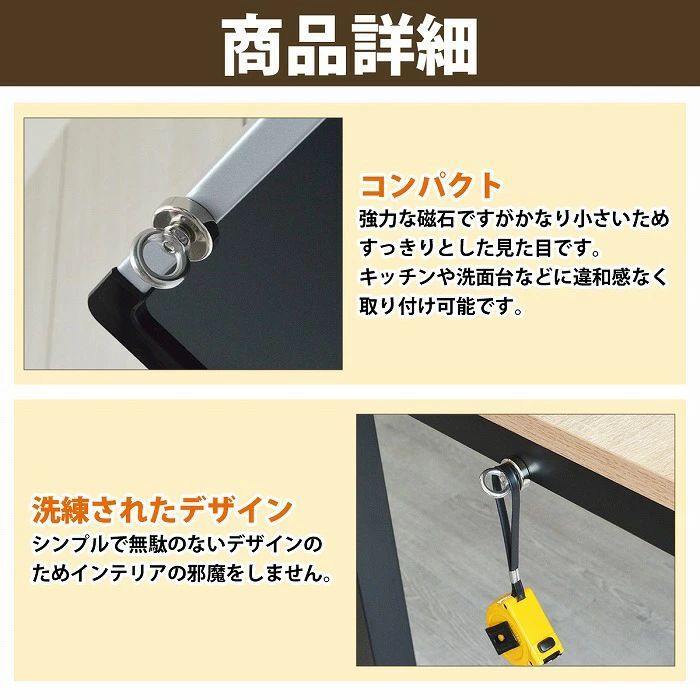 ● 磁力は強力ですが、厚みのある金属の場所で最大の磁力を発揮します。