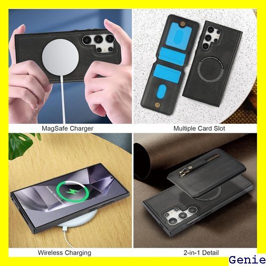 収納機能:ギャラクシーS25ウルトラ カバー は収納ニーズを満たし、ケース背面の取り外し可能なカードケースには、4つのカードスロットと1つのジッパー付きコインポケットが装備されています。カードケースにはスナップ開閉式の強力なマグネットが内蔵されており、クレジットカード、交通カード、コインをよりよく収納・保護し、外出をより簡単にします。