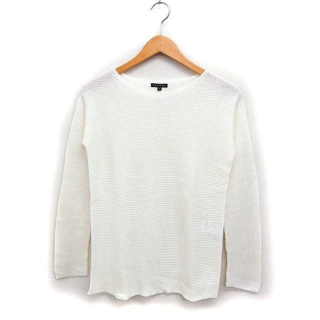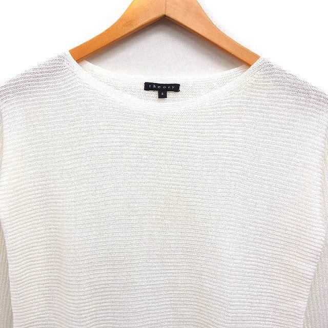 セオリー Theory リネン 麻 ニット セーター 長袖 ボートネック 無地 S オフホワイト 白 /FT35 レディース