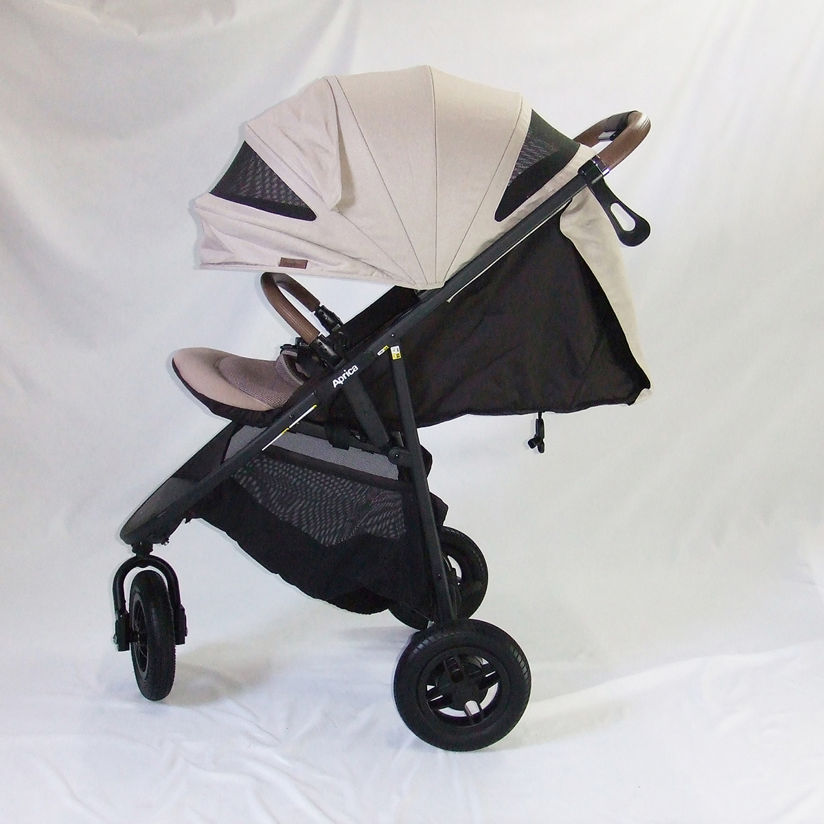 アップリカ Aprica ベビーカー『スムーヴ』です。 【製品仕様】現状優先 ・対象年齢:1ヶ月から3歳(適応体重 15kg以下) ・本体重量:約9.0kg ・サイズ:約 開:W543×D886×H1066(mm)、閉:W543×D332×H887(mm) ・リクライニング:109°~152° ・背面式ベビーカー ・A型ベビーカー ・地面の熱・ホコリ・排ガスから遠ざける『59㎝ハイシート』 ベビーカーでは、赤ちゃんは大人よりもずっと地面に近い位置にいることを忘れがち。真夏の炎天下で、150㎝の大人と地面近くとでは、なんと約5℃の温度差があります。体温調節がまだ上手にできない赤ちゃんは、より地面からの熱などの影響を受けてしまいます。ハイシートは熱・排ガス・ホコリなどの刺激から赤ちゃんを遠ざけます。 ・3輪ならではのスムーズな操作性 前輪が1つなので、軽いハンドル操作でクイッと小回りが効いて、狭いところでもスイスイ進めます。 ・ベアリング搭載で軽くて滑らかな押し心地 3つのタイヤと前輪のキャスター軸に合計8つのボールベアリングを搭載。摩擦を少なくして車輪の回転を滑らかにし、軽い押し心地を実現します。 ・22㎝大径タイヤで段差もへっちゃら タイヤが22㎝の大径だから、動き出しがスーッとスムーズで、安定した押し心地。段差もラクラク乗り越えできます。 ・中空構造のメンテナンスフリータイヤ 中空タイヤ構造を採用。弾力性があり、優しい押し心地を提供します。しかも、空気入れが不要でパンクレスなメンテナンスフリータイヤなので、忙しいママやパパにぴったりです。 |