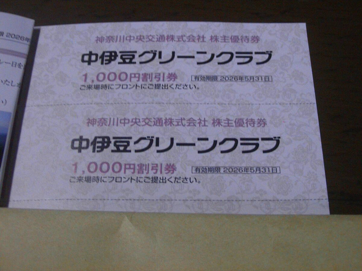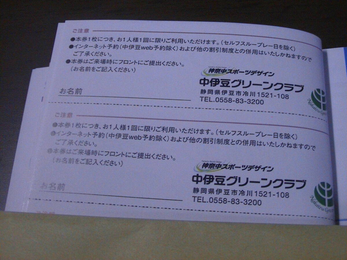 中伊豆グリーンクラブ プレー代等の総額から1,000円割引券 が、2枚です。
