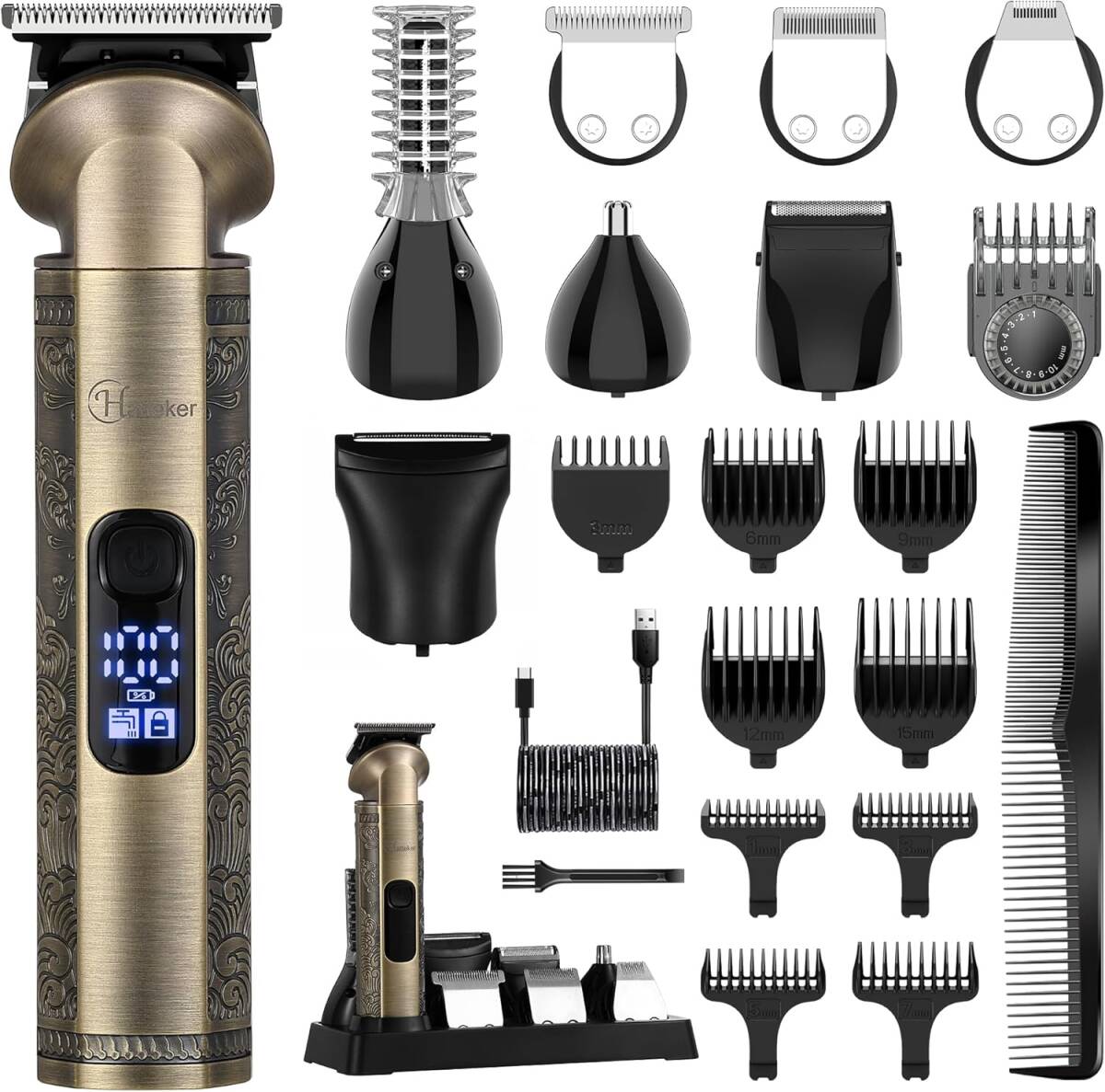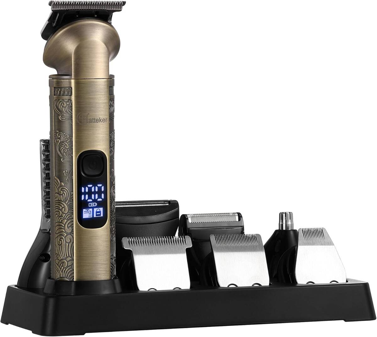 Hatteker ひげトリマーキット専門理髪器隙間ゼロT形ブレードトリマー鼻用電気かみそり耳胴顔面トリマー男性コードレス 8 in 1