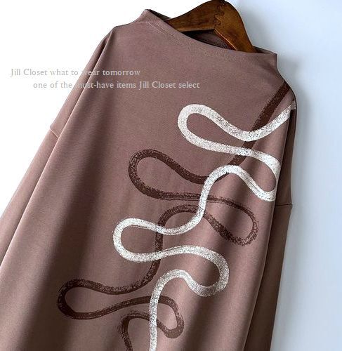 新品【送料185円】伸縮◎アートプリント*ボトルネックデザイン*プルオーバー*チュニック*ワンピース6901. smorkpink