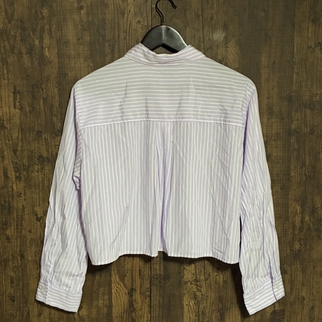C17◇petit Honfleur | プチオンフルール ストライプシャツ パープル×ホワイト レディース 9サイズ 中古品