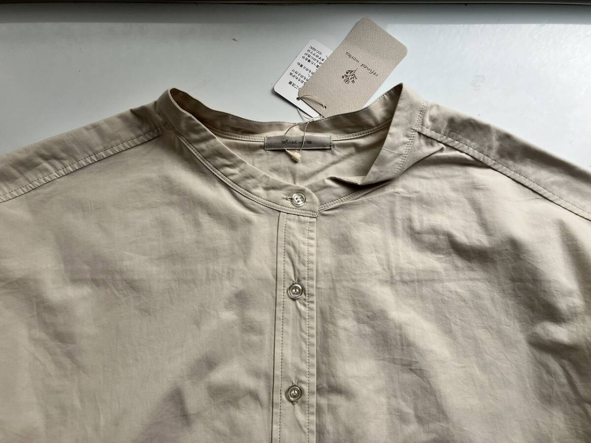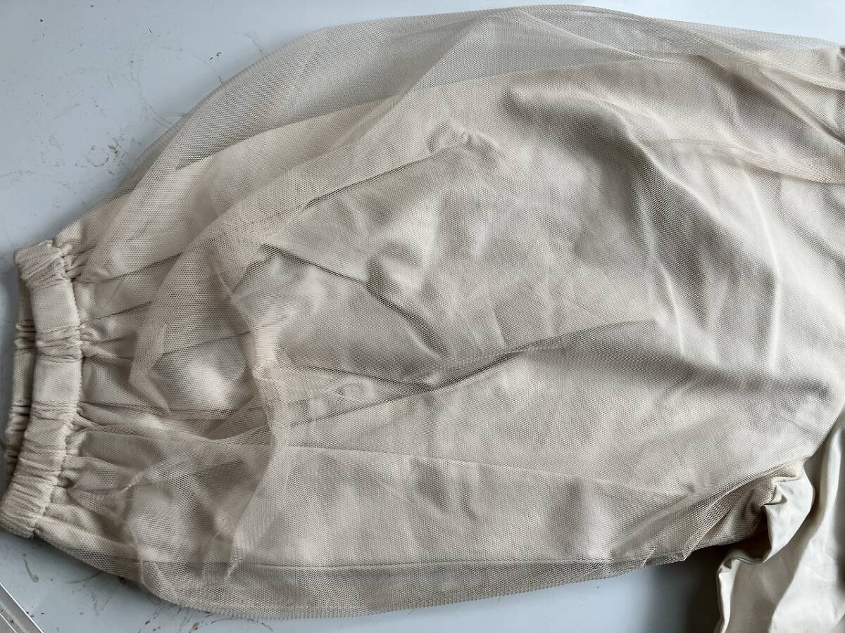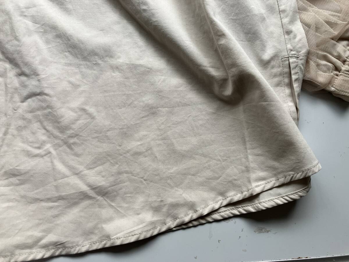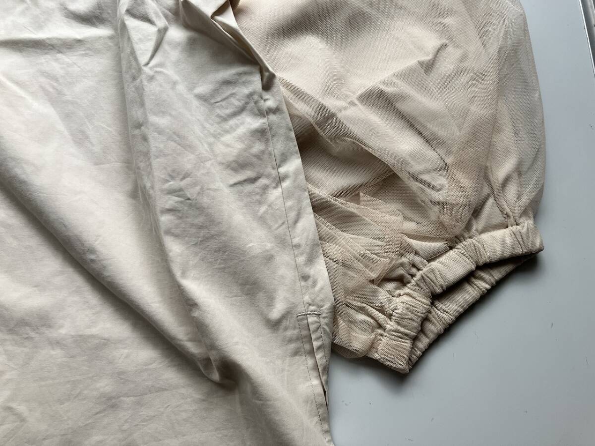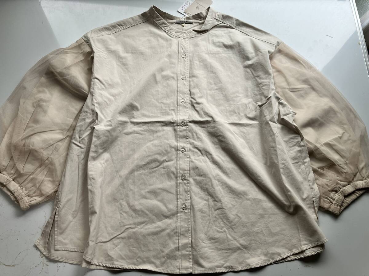 新品■大きいサイズ4L~5L■ノーカラーチュールレースパフ袖シャツ■