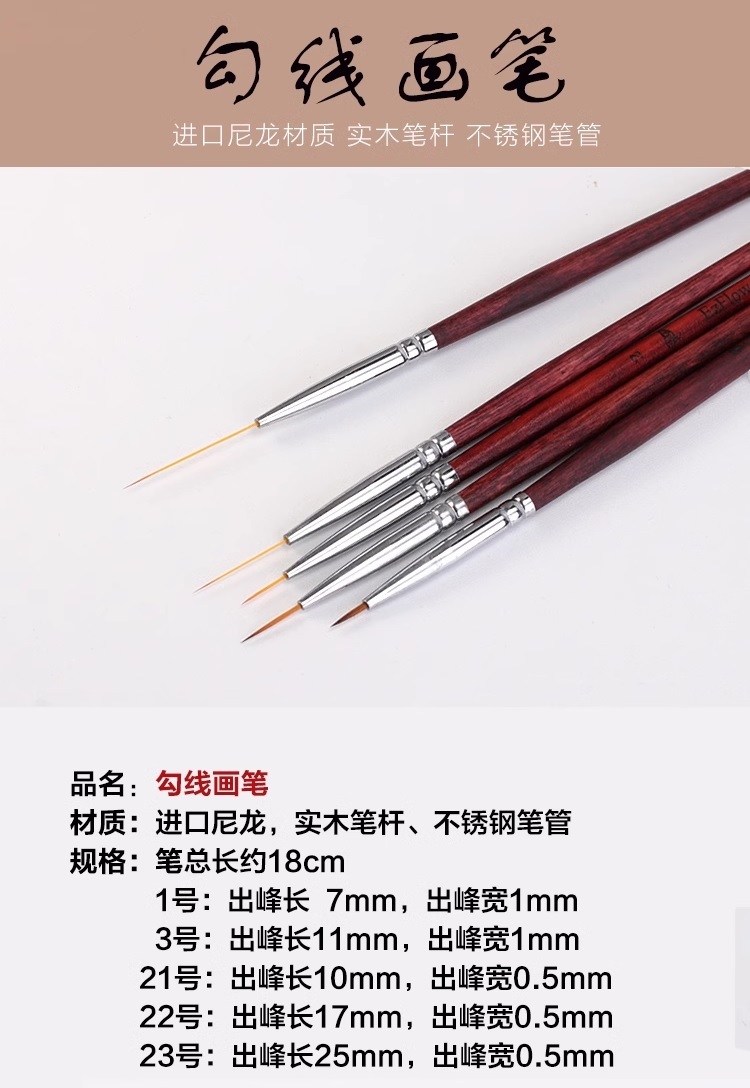 BFC-15949(3) 面相筆 5本セット 極細勾線 工筆画 細密画 痩金体 線描 白描 水彩 不透明水彩 アクリル 中国画 彩墨画 製図筆