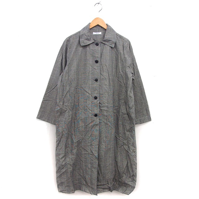オムネス OMNES グレンチェック ステンカラー コート コットン 綿 シングル スリット 黒 ブラック /NT21 レディース