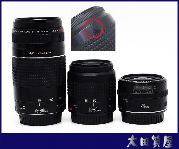 CANON EF28mm F2.8、EF35-80mm F4-5.6Ⅲ、EF75-300mm F4-5.6Ⅲ USM |