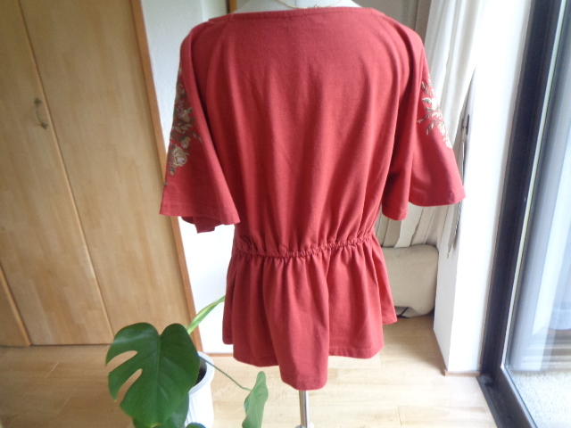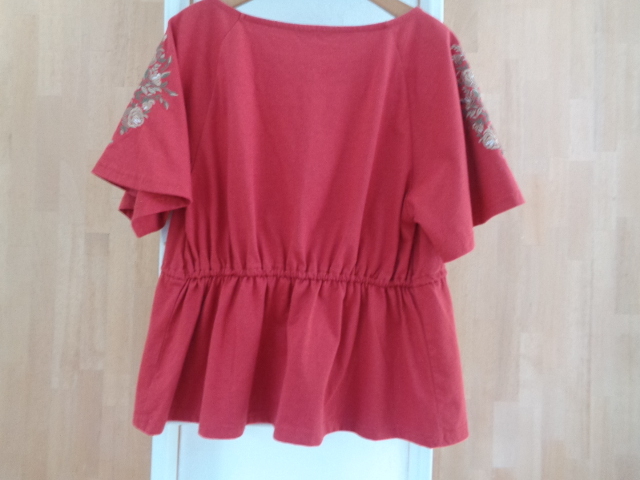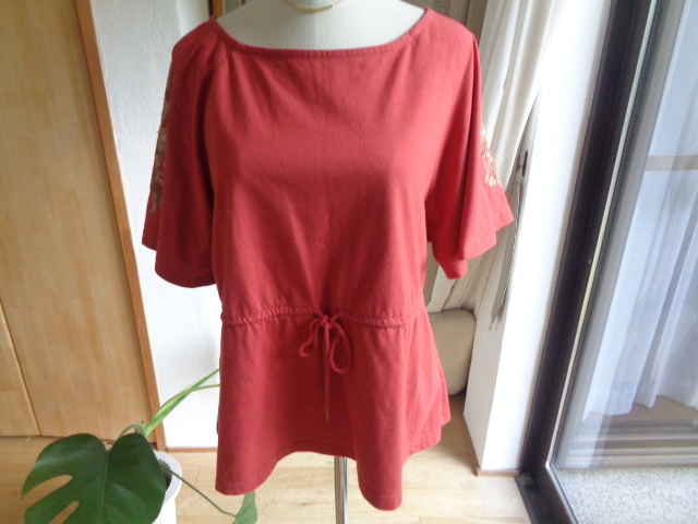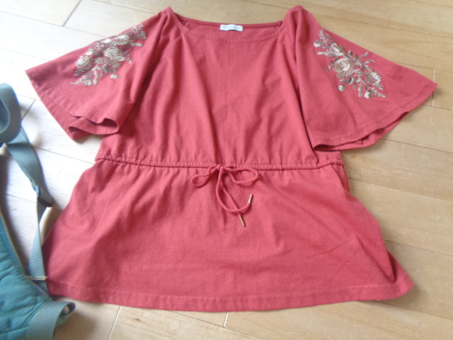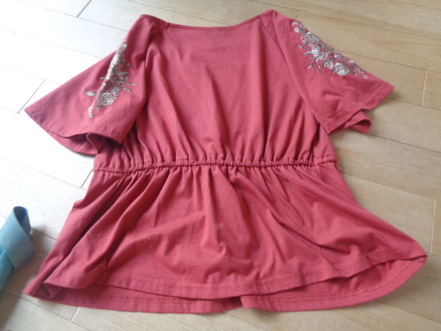 アースミュージックエコロジー コットン ウエスト絞り 半袖カットソー お袖刺しゅう可愛い♪ ラグラン袖 フリー 美品♪
