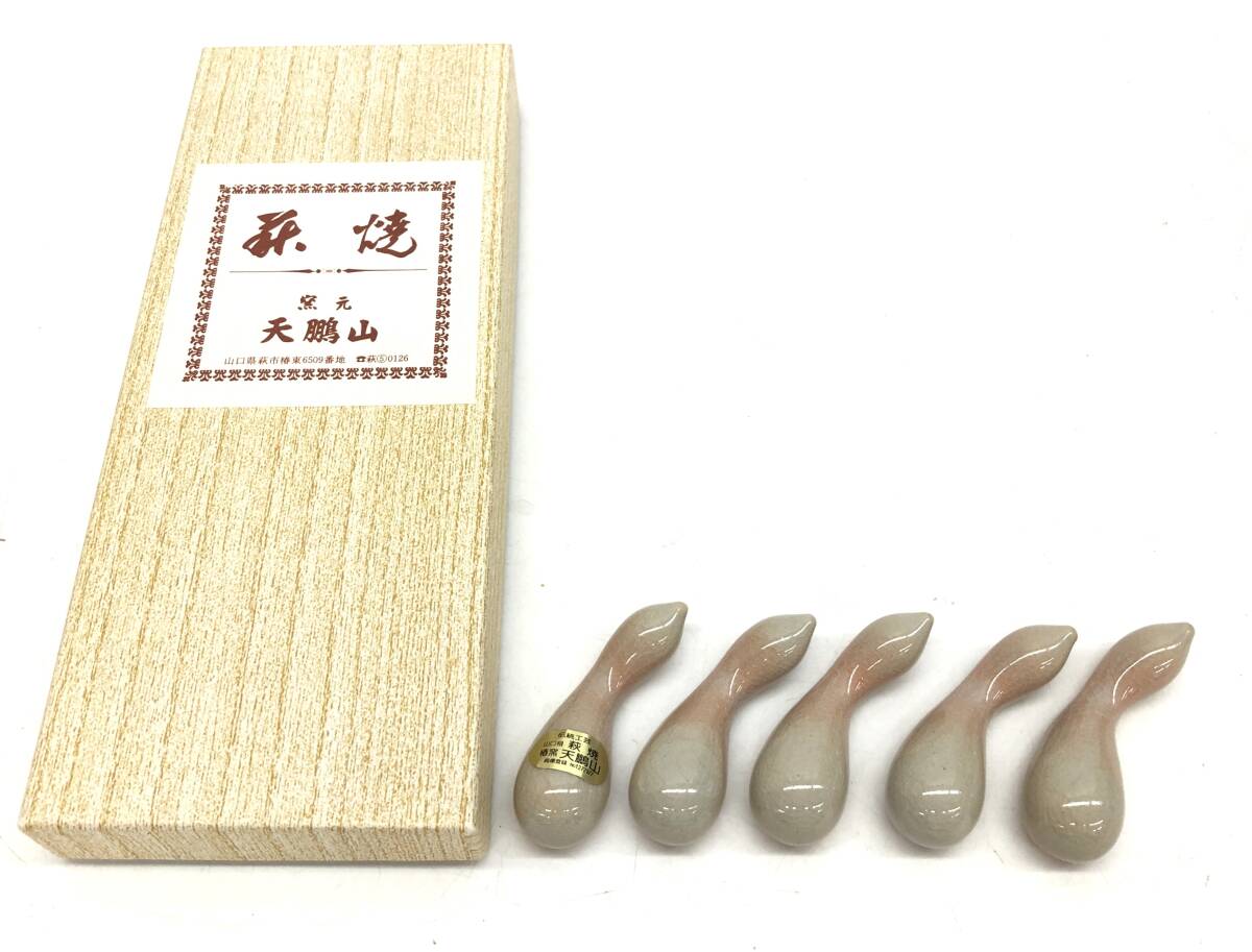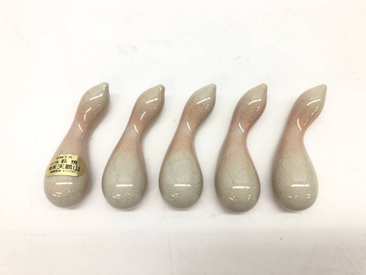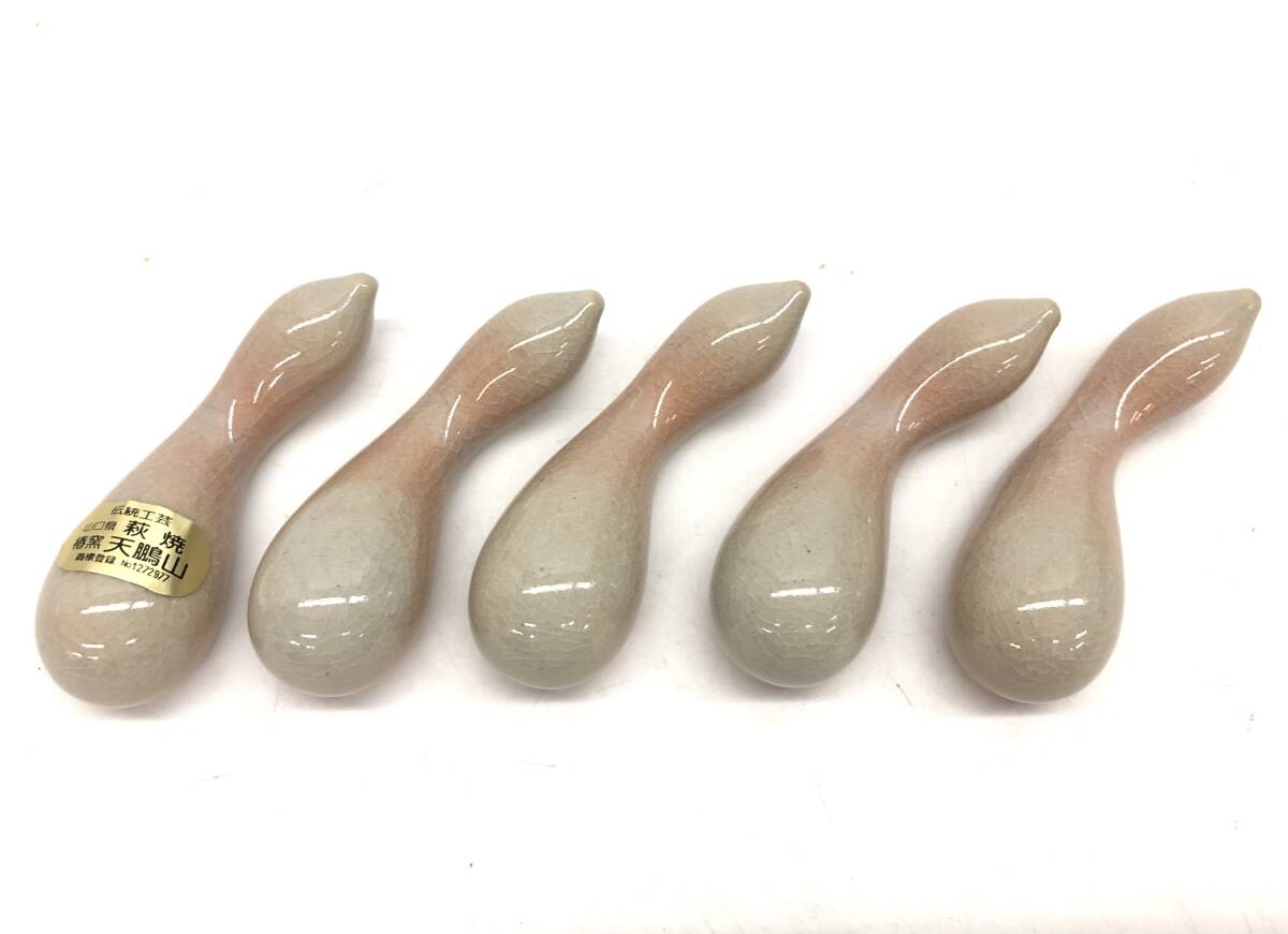 | 保管品 萩焼 天鵬山 箸置 箸置き 瓢箪型 和食器 カトラリー テーブルウェア 陶器製 5点おまとめ 全長6.5㎝ 最大直径2㎝ 高さ1.7㎝ 箱付 |