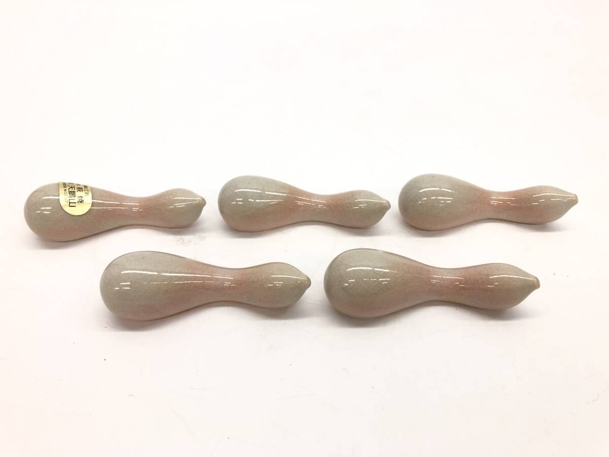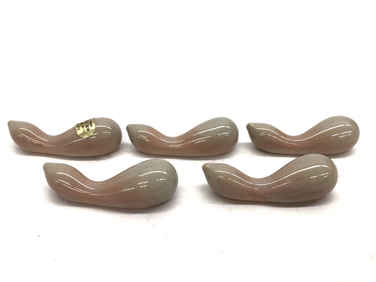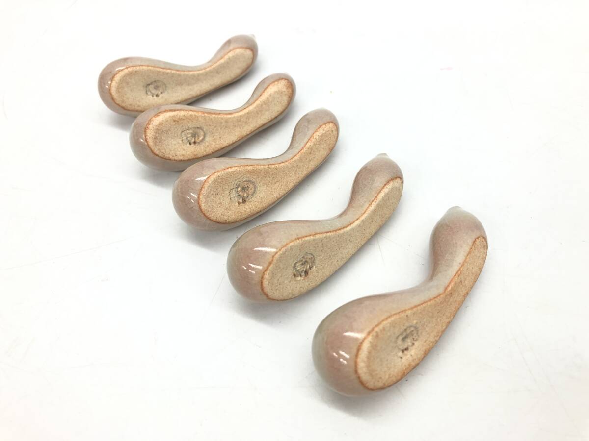 | 保管品 萩焼 天鵬山 箸置 箸置き 瓢箪型 和食器 カトラリー テーブルウェア 陶器製 5点おまとめ 全長6.5㎝ 最大直径2㎝ 高さ1.7㎝ 箱付 |