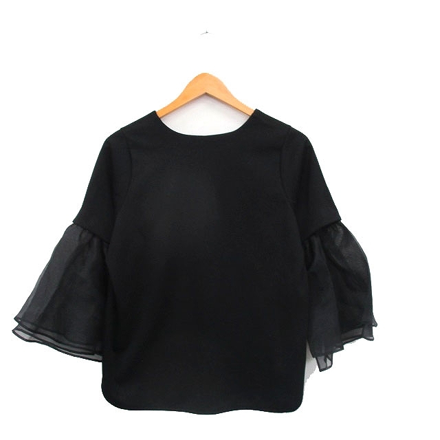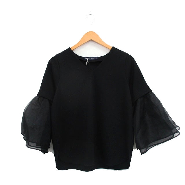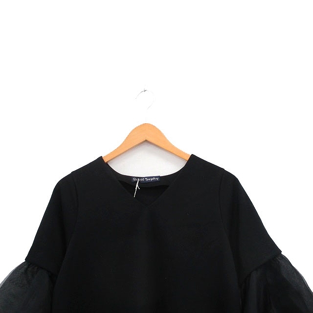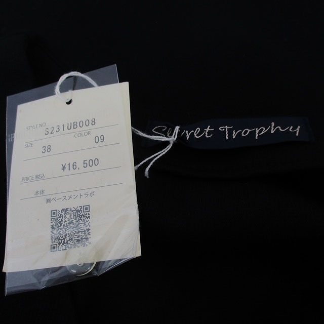未使用品 シークレットトロフィー Secret Trophy タグ付き カットソー Tシャツ 七分袖 Vネック シンプル 38 ブラック 黒 /KT34 レディース