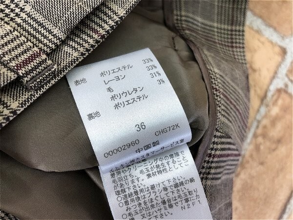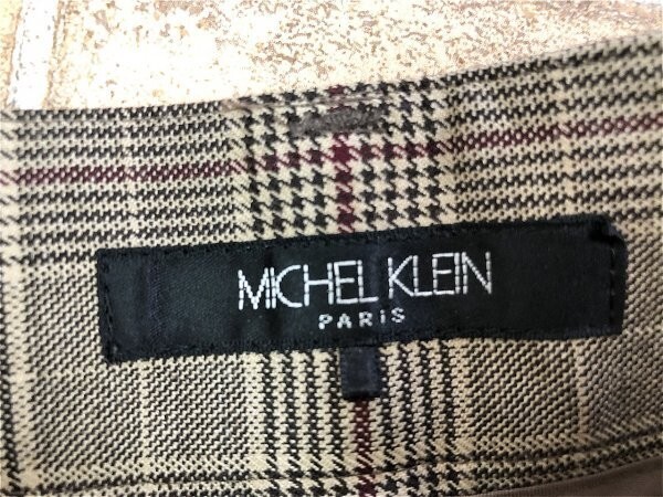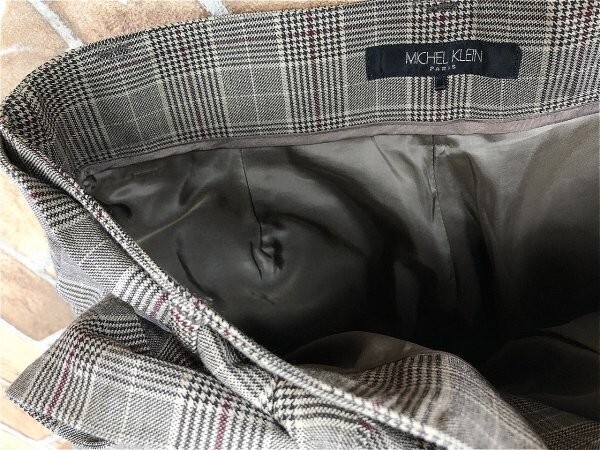 MICHEL KLEIN ミッシェルクラン レディース タック入り ウエストリボン チェック ワイドパンツ 36 焦げ茶赤
