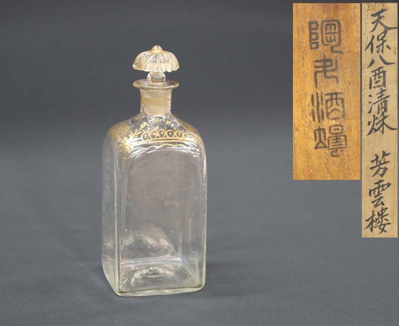 箱の蓋表に【紅毛酒瓶】、蓋裏に【天保8年(1837年)秋 芳雲楼】の文字があります。