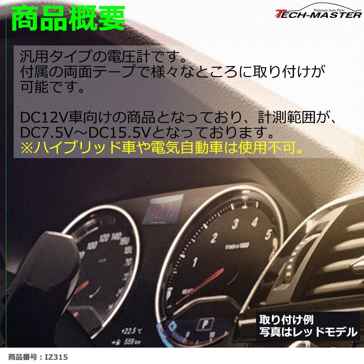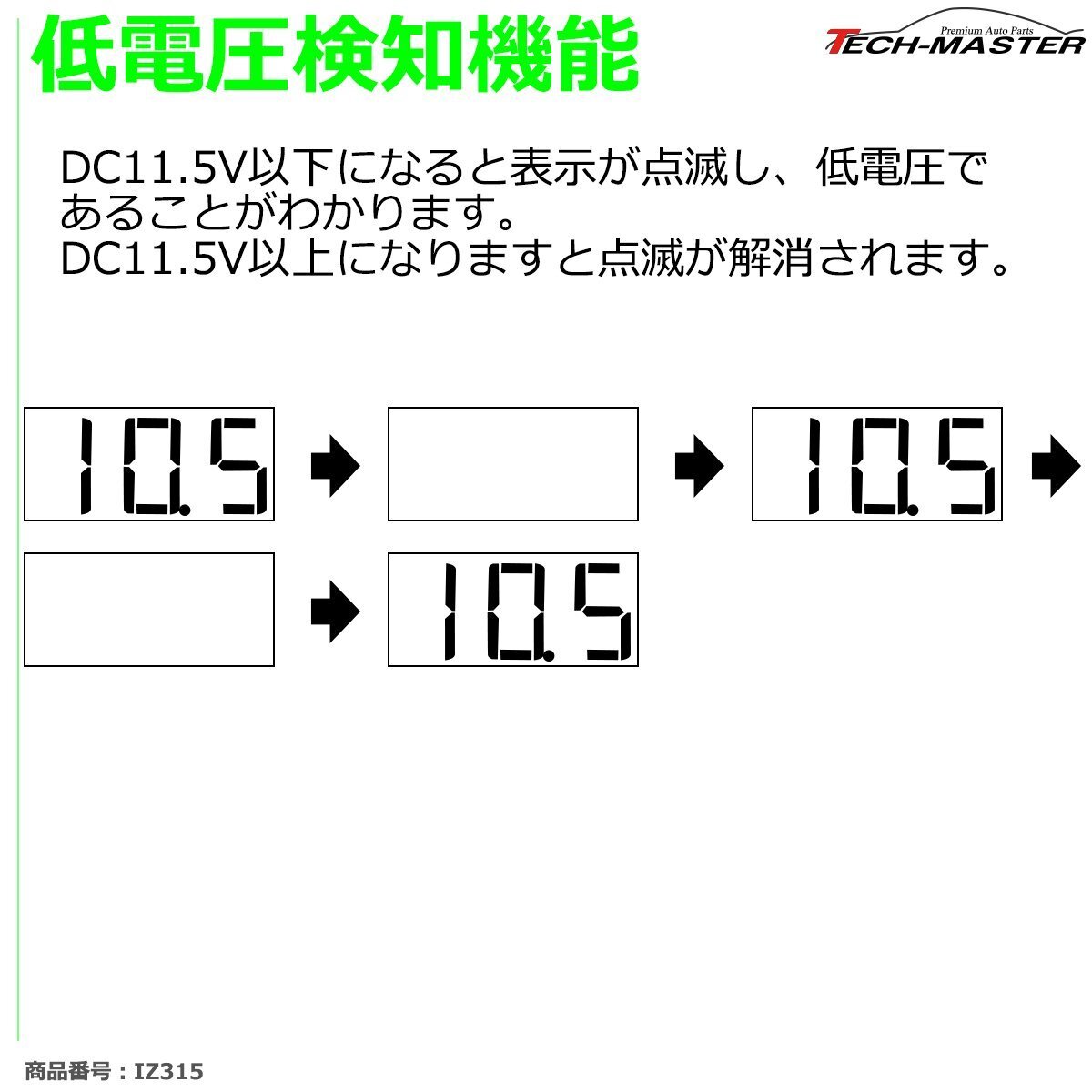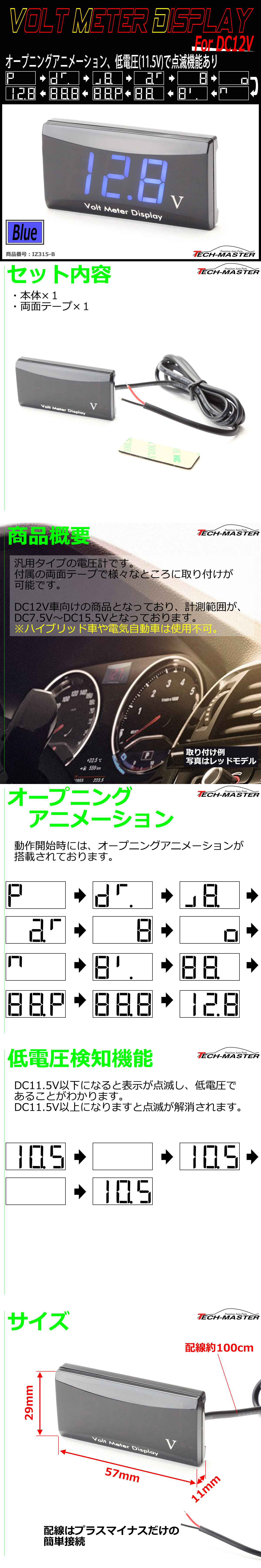 | デジタル 電圧計 DC12V専用 数量:1個 対象電圧:DC12V(測定範囲:DC7.5V?DC15.5V、低電圧検知DC11.5V) メーターカラー:ブルー |