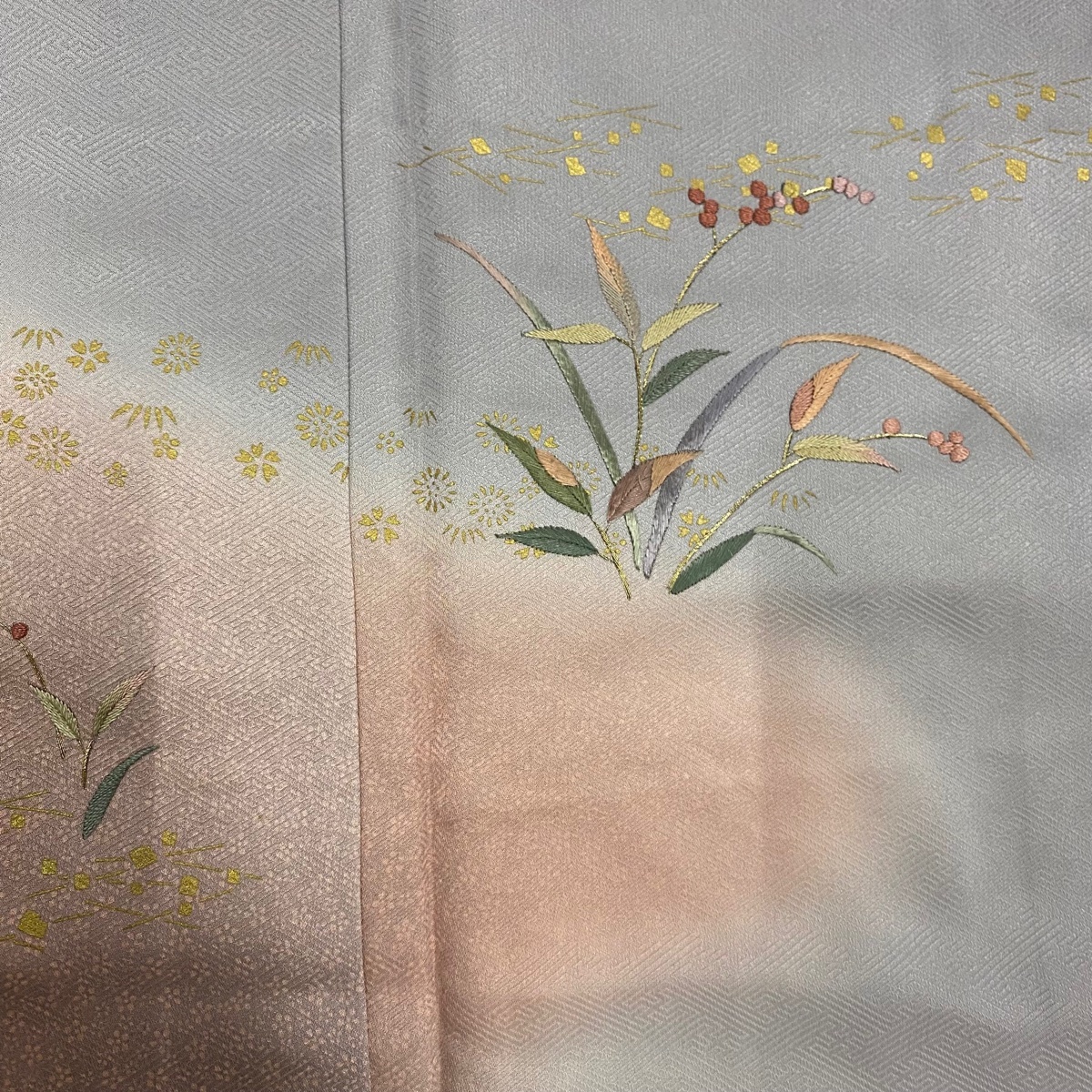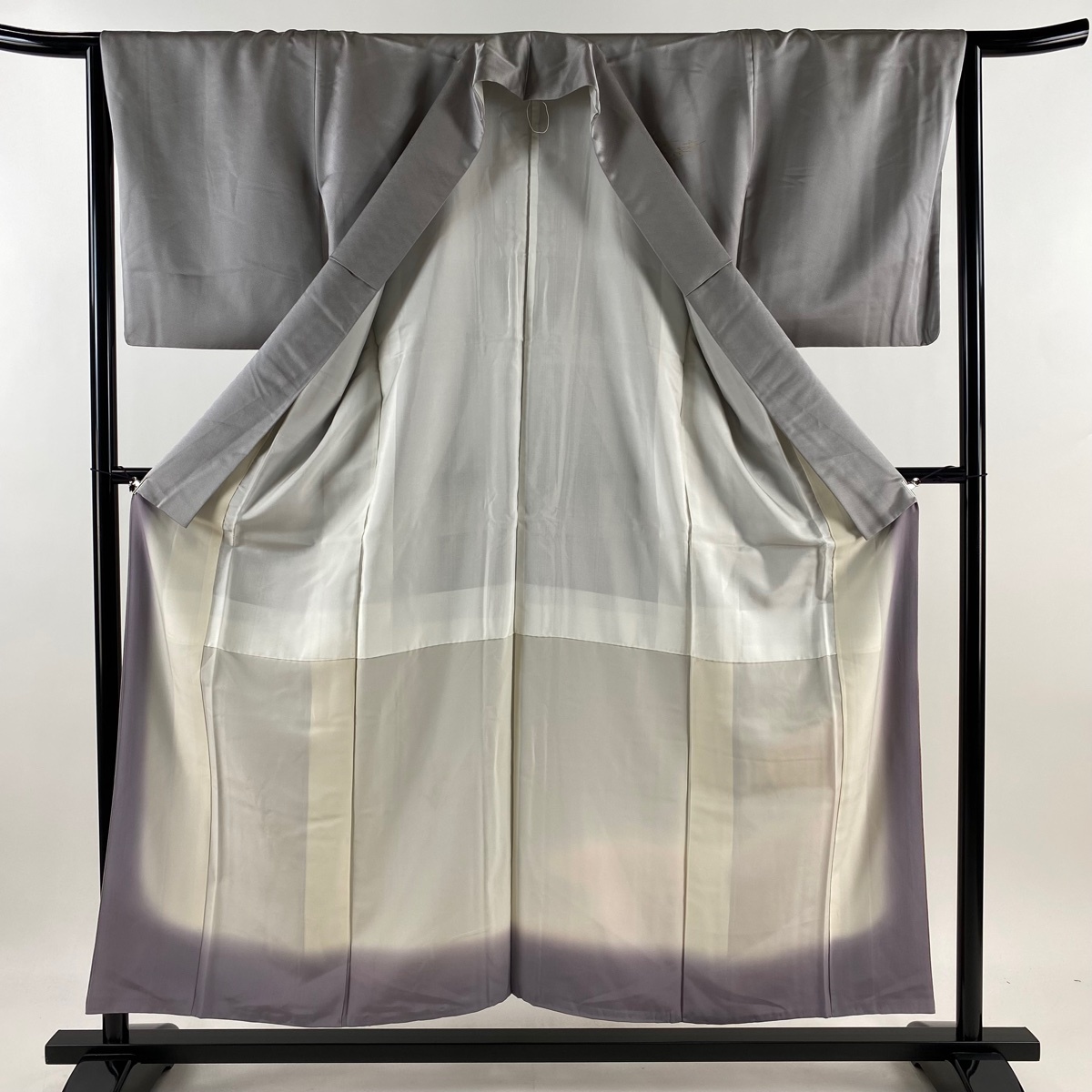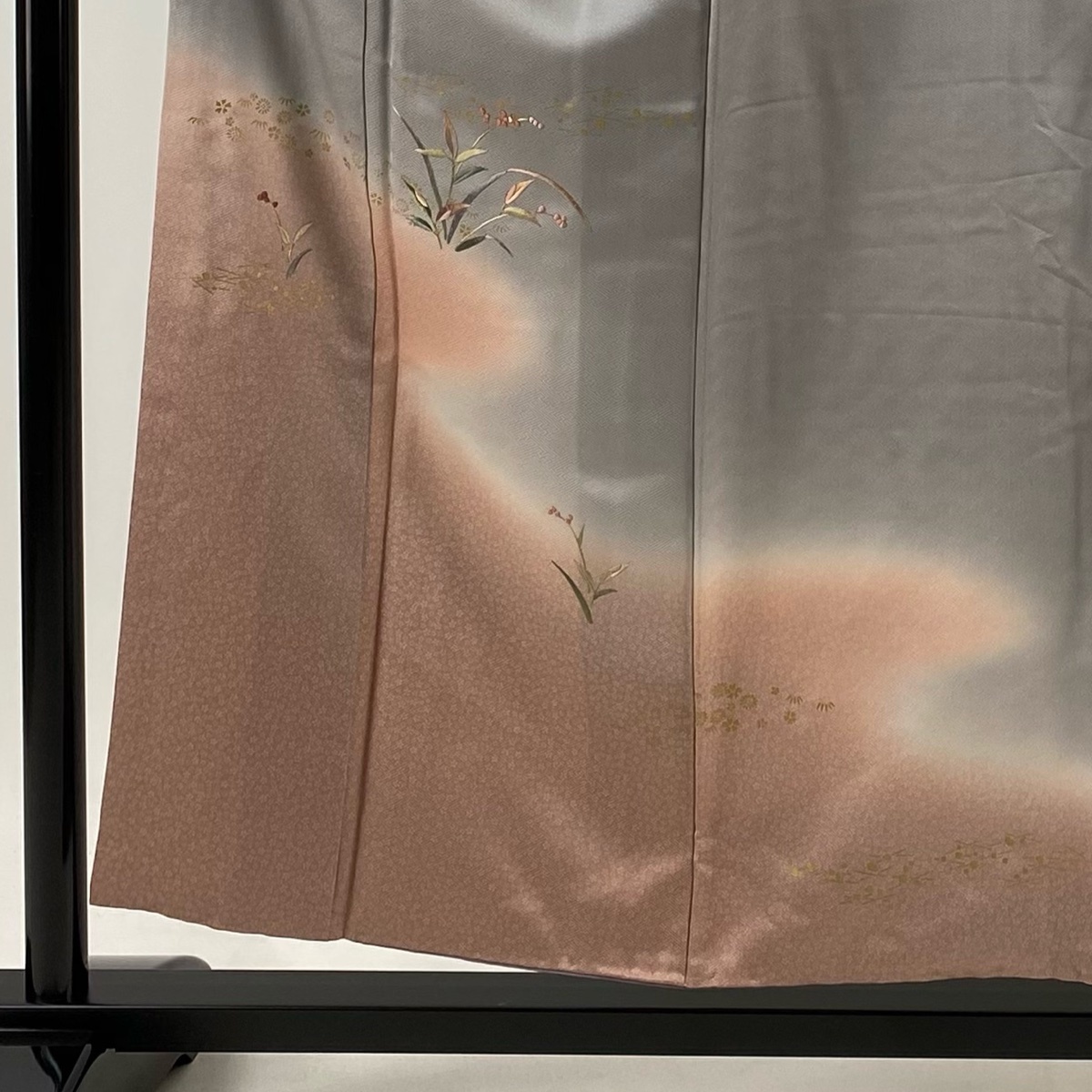| 付下げ 秀品 草花 霞 金糸 灰紫 袷 身丈154 裄丈64.5 M 正絹 【中古】 |