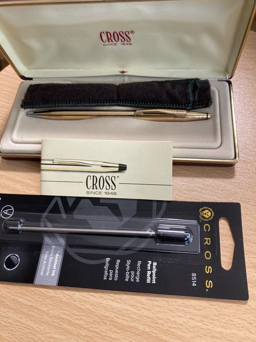 クロスの人気のクラシックセンチュリー、14kt、ボールペンです。旧ロゴのヴィンテージ品です。黒の純正リフィルをお付けしました。重量18.8gに対して5%(1/20)の14金含有量がある価値あるお品です。目立った傷や汚れの無いピッカピカの非常に綺麗なきれいなお品です。布ケース、綺麗なケースも付いています。プレゼントに、いかがでしょうか?
